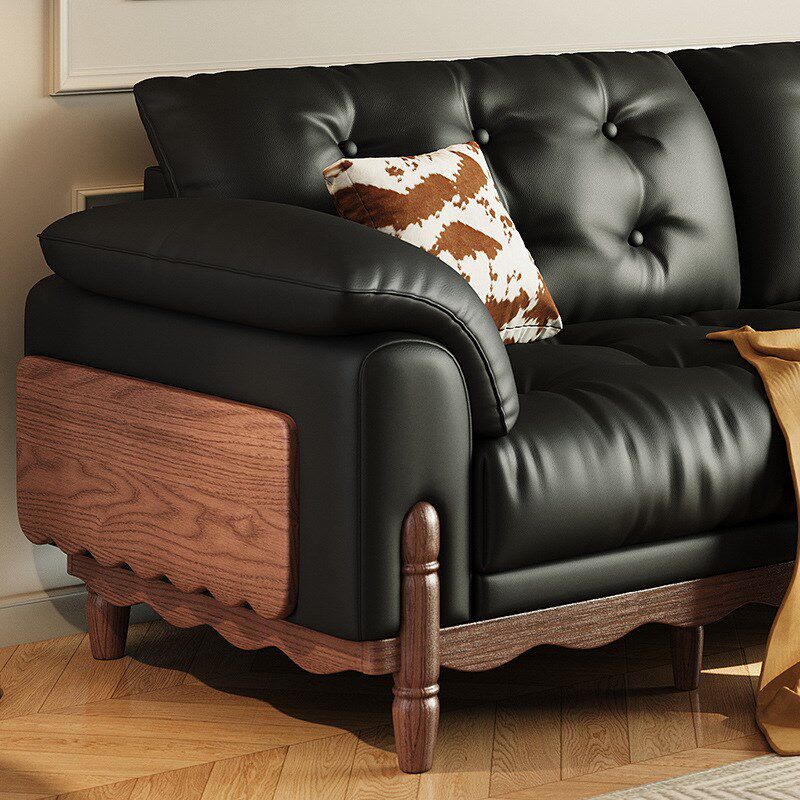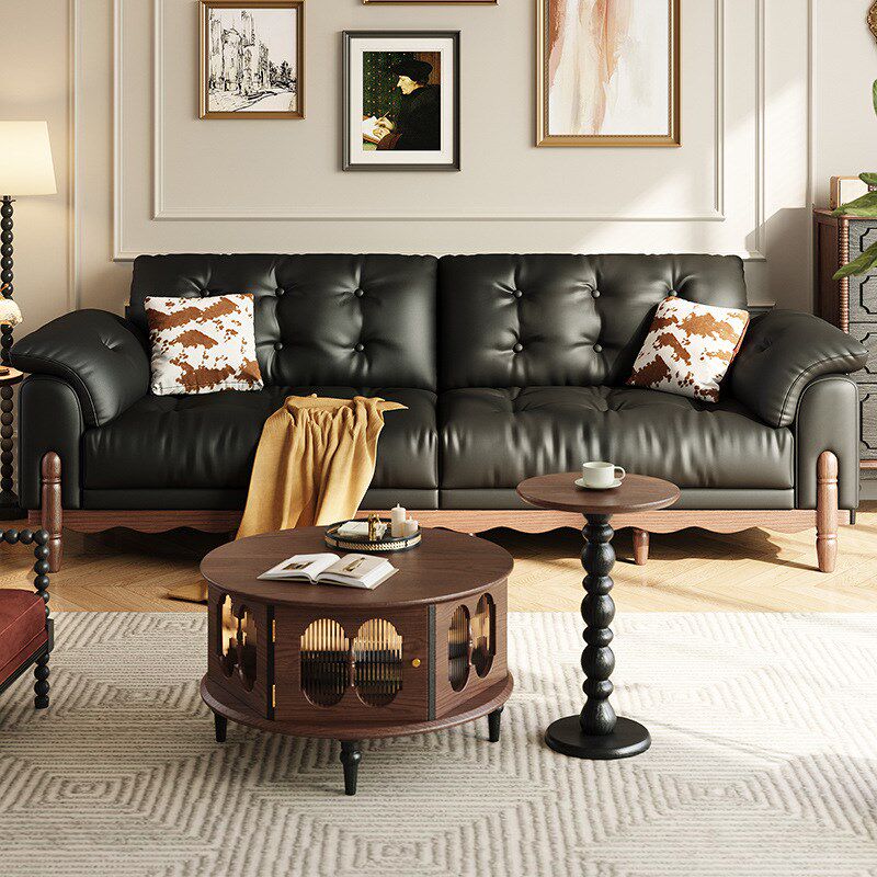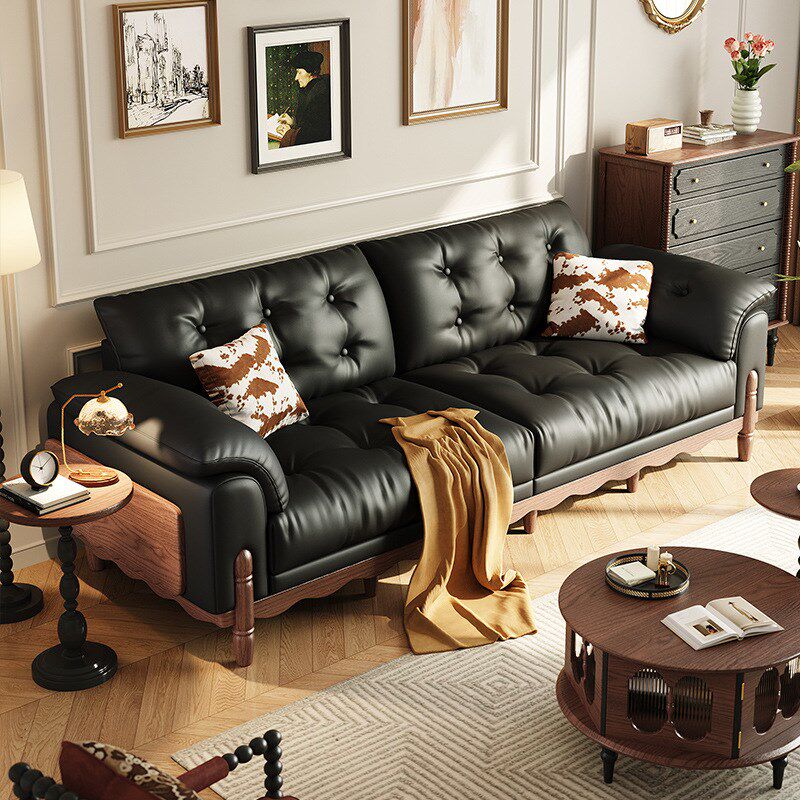 中古风沙发客厅油蜡皮小户型黑色家用法式复古风皮艺沙发2025新款