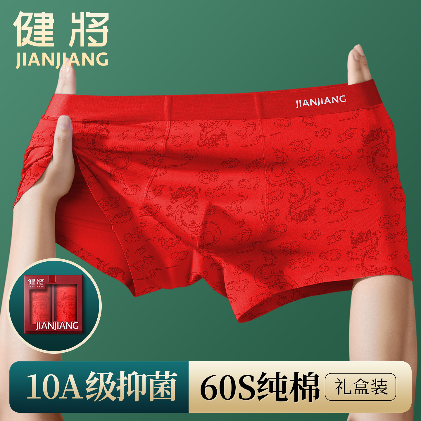 健将红内裤袜子组合本命年男士纯棉抗菌接好运结婚大红色四角短裤