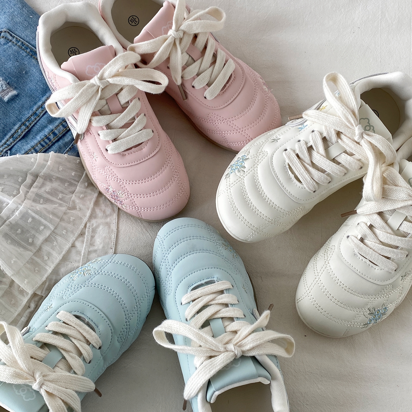 韩版蓝色碎花刺绣德训鞋休闲板鞋