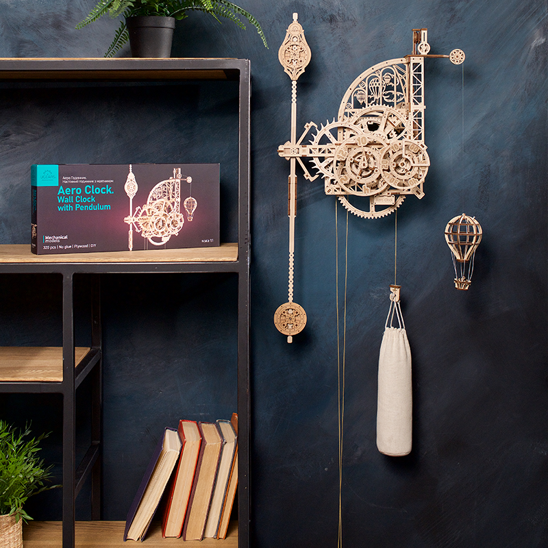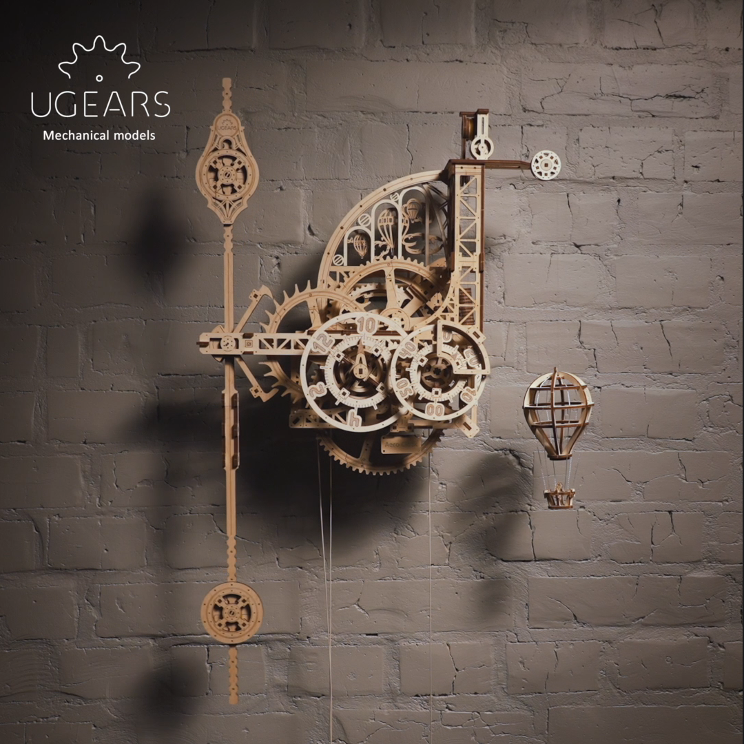UGEARS进口机械航空时钟木质3d立体拼图积木摆件生日礼物解压墙钟