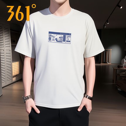 361度短袖T恤男2025夏季新款透气圆领半袖休闲运动上衣552439110