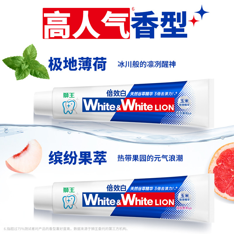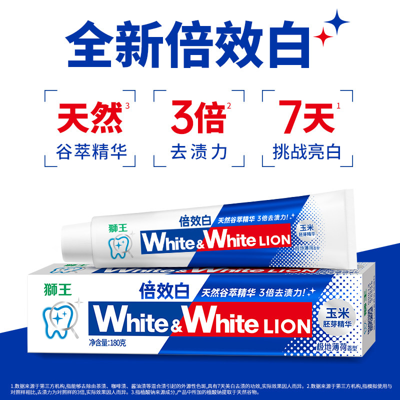 LION狮王White&White倍效白牙膏美白去渍180g去黄清新口气正品