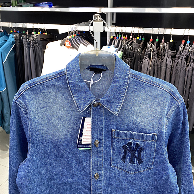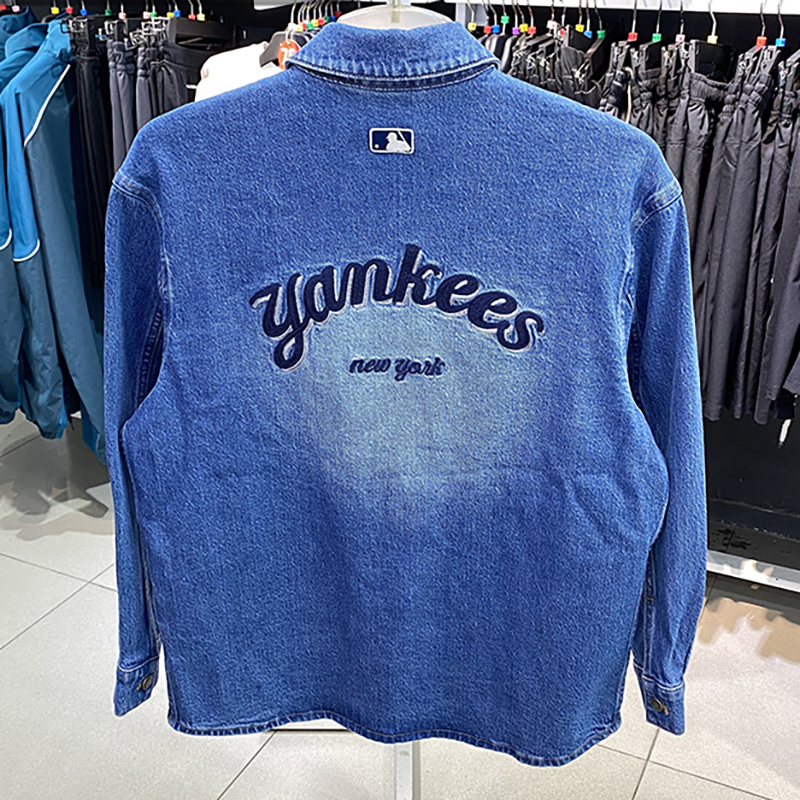 MLB长袖衬衫男女同款情侣NY复古休闲运动服翻领牛仔外套3ADRV0144