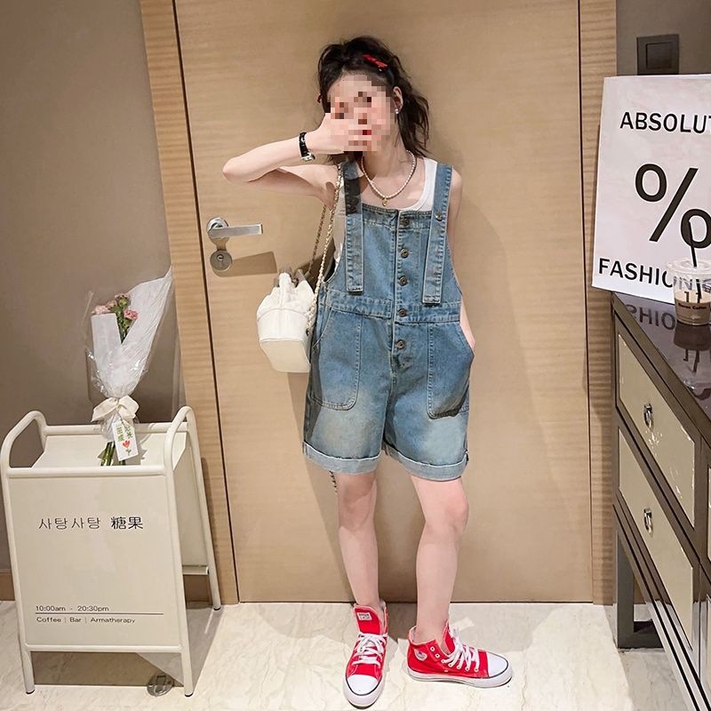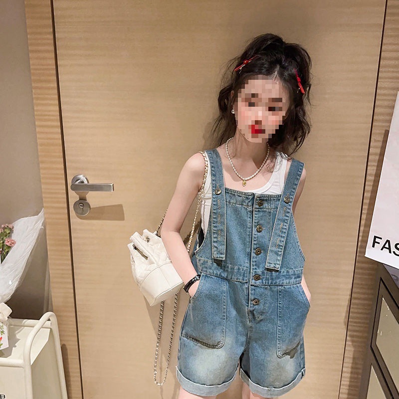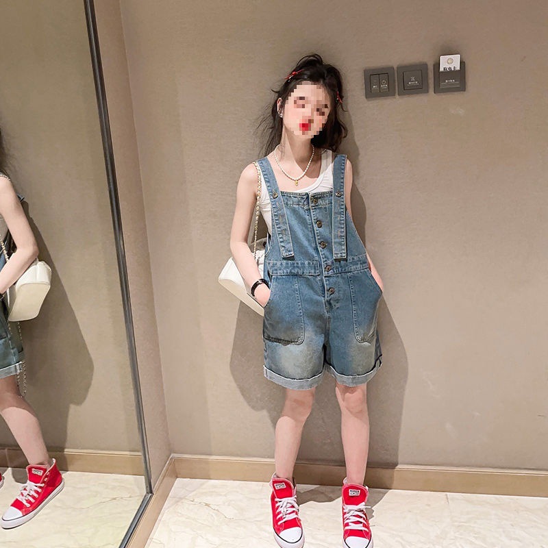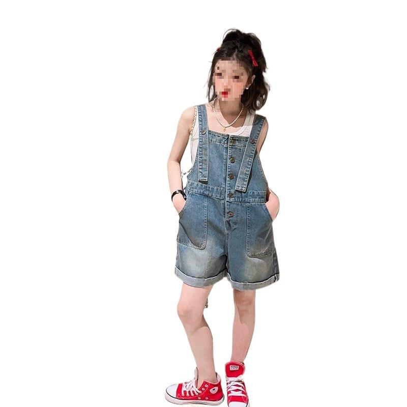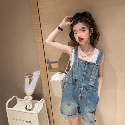 女童背带裤2025夏季牛仔新款背带中大童套装女孩短裤两件套现货