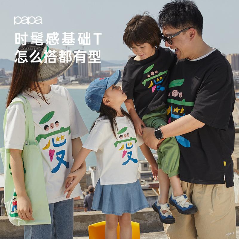 【亲子装】papa爬爬夏儿童宝宝乐园T恤亲子装一家三口纯棉母子装