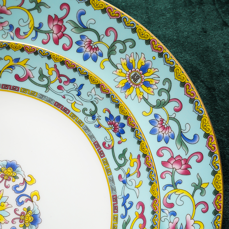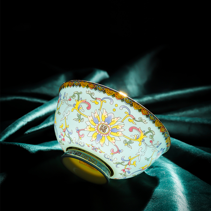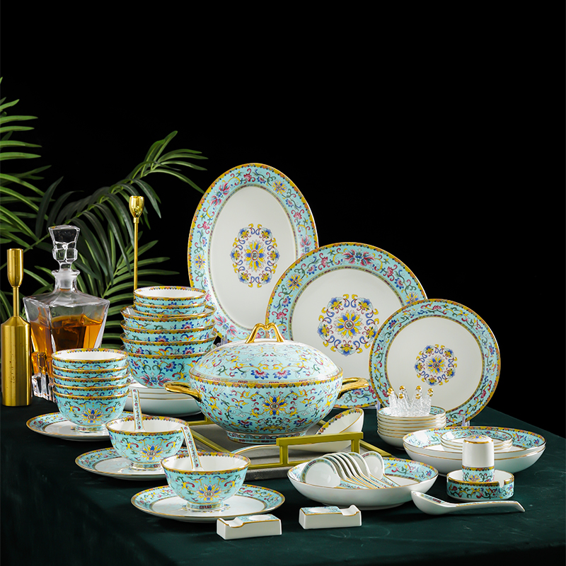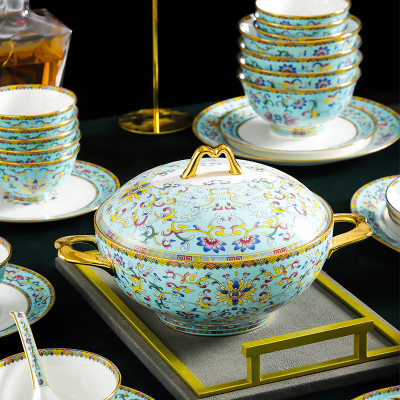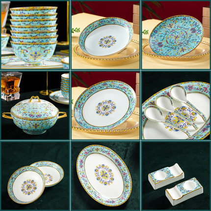 珐琅彩瓷碗中式碗碟套装家用景德镇餐具骨瓷碗吃饭碗盘高档礼品瓷