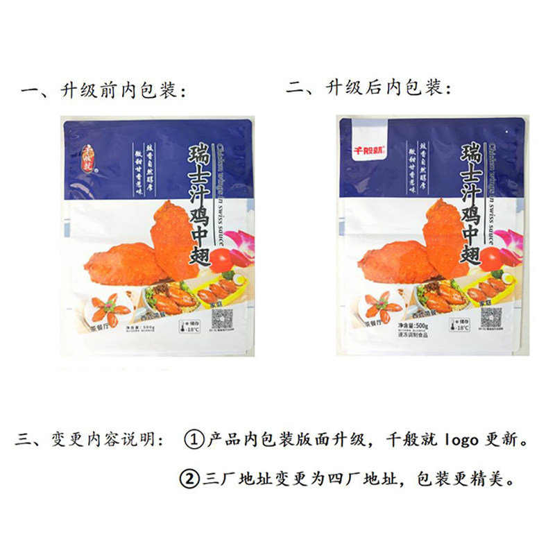 千般就瑞士汁鸡中翅500g甜卤型鸡翅中酱香鸡亦中西快餐冷冻半成品