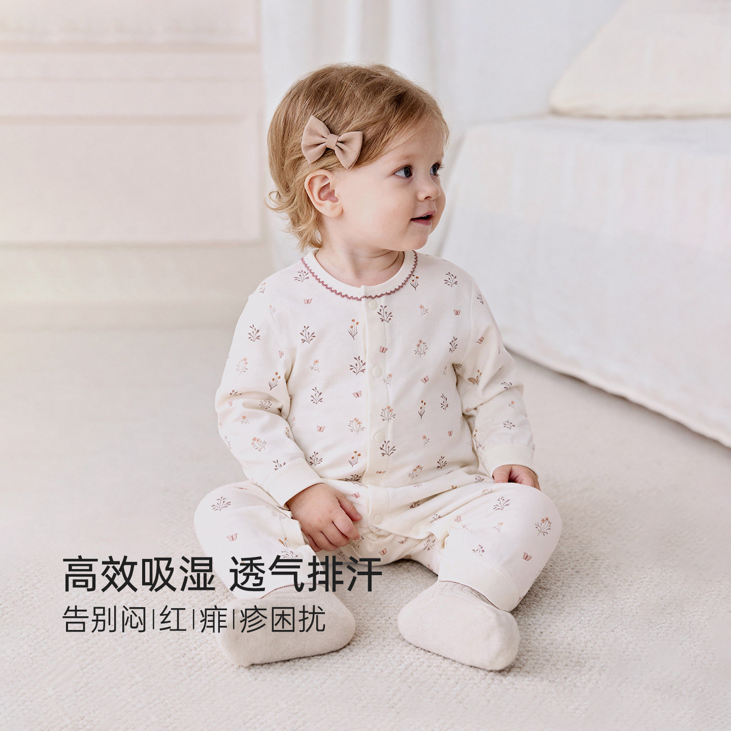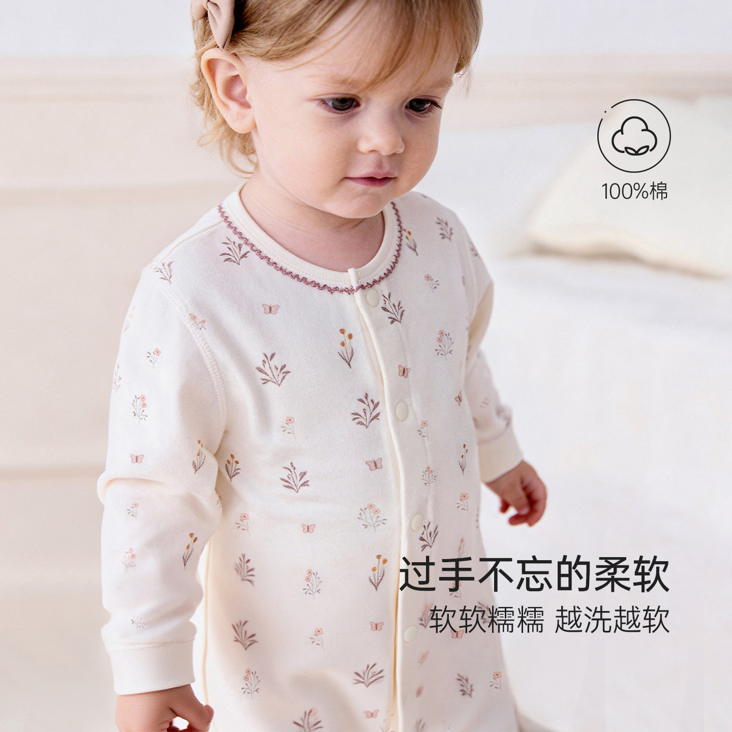 babylove【纺软织柔】女宝宝连体衣春秋纯棉哈衣婴儿衣服蝶舞花语