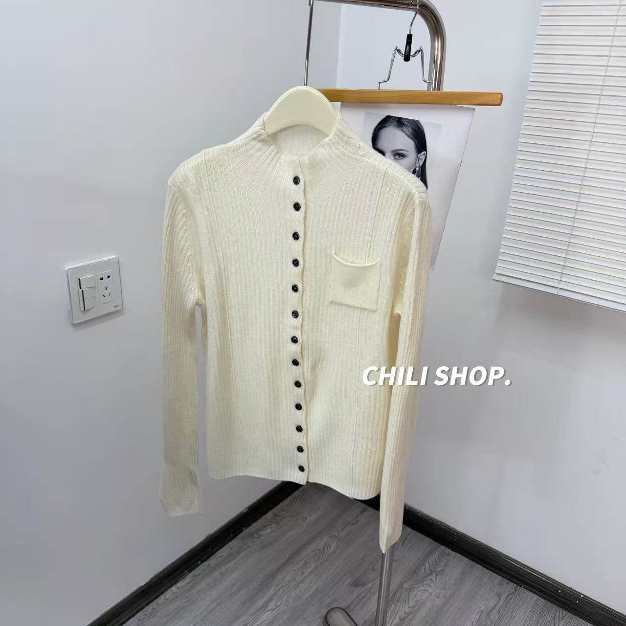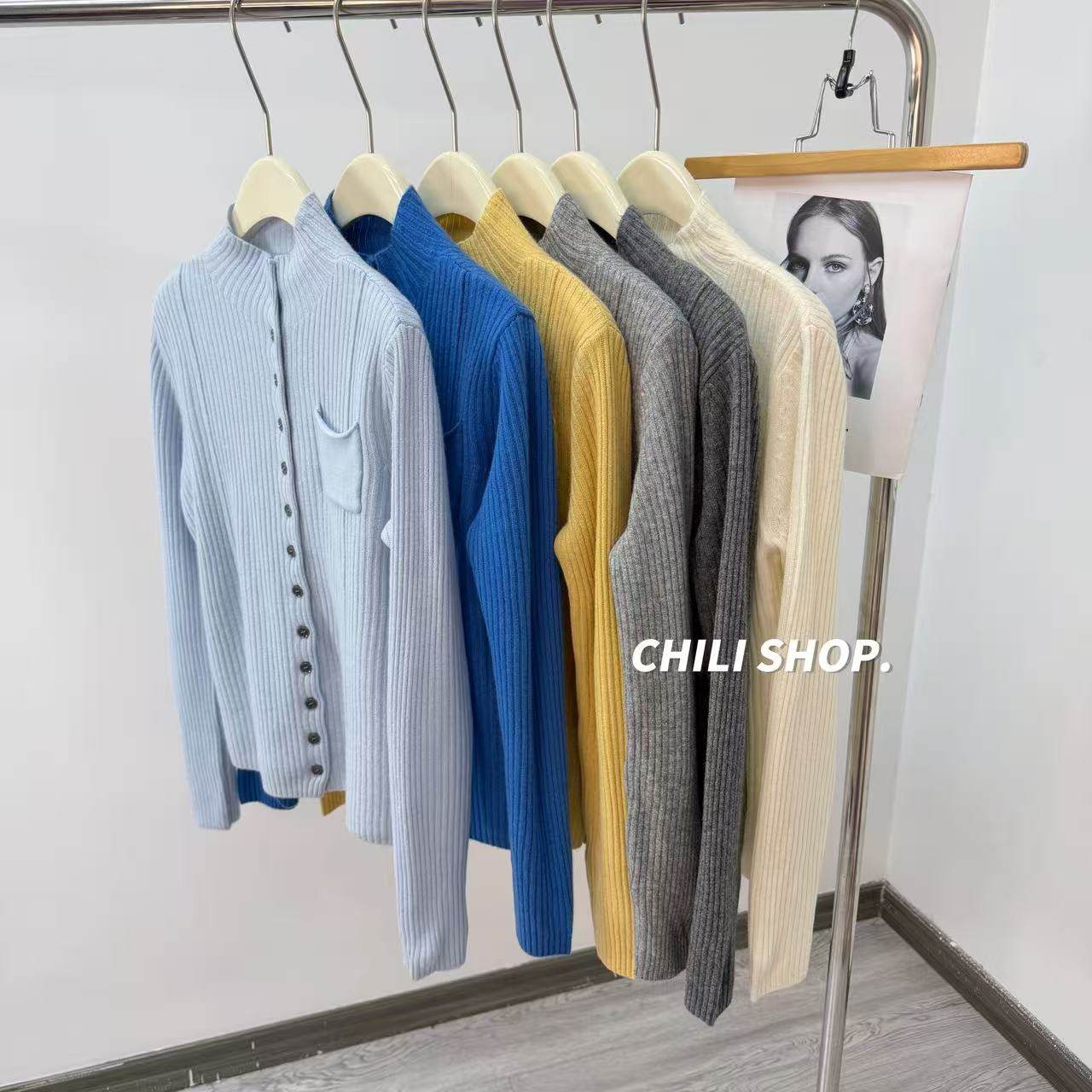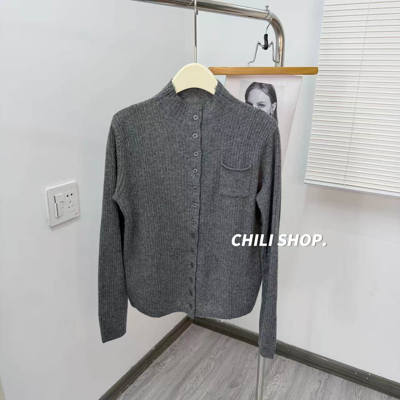 【英英Chili】欧货中领扣子设计100全羊毛简约针织毛衣 12.06
