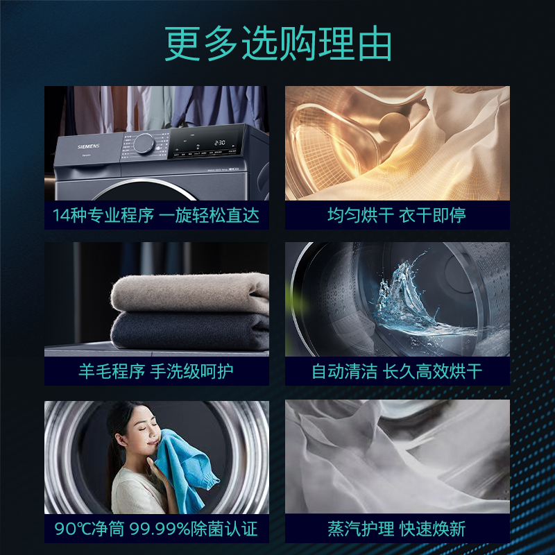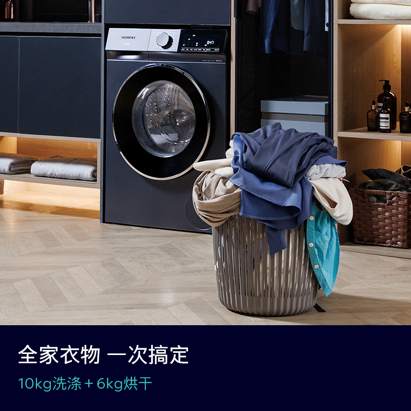 【蓝宝石】西门子10公斤家用变频智能投放洗衣机洗烘一体机1A10