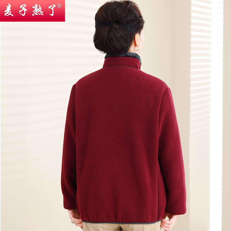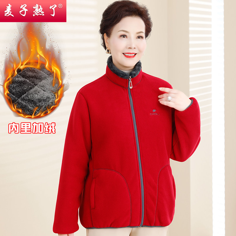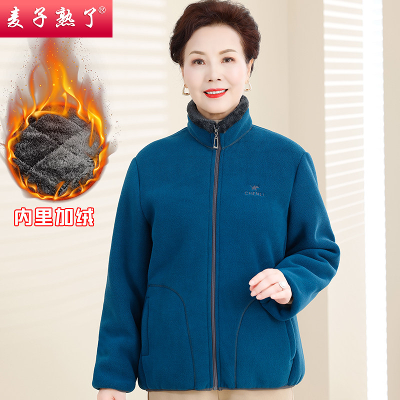 中老年人女妈妈装加绒加厚摇粒绒保暖棉袄2025冬季新款奶奶装外套