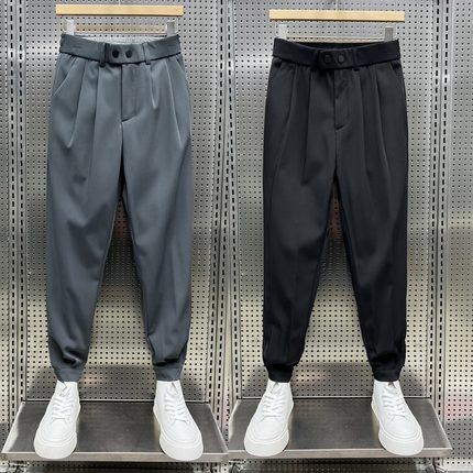 2024裤子男夏季潮牌男薄款直筒休闲裤宽松小脚阔腿裤褶皱垂感西裤