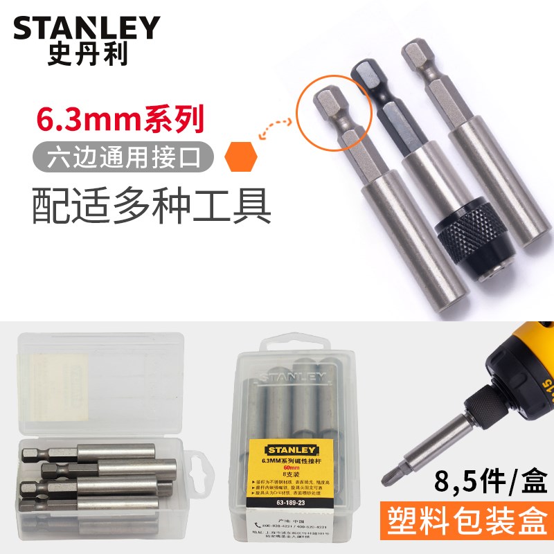 史丹利批头转换器延长接杆电动螺丝刀起子头加长连接杆磁性63-189
