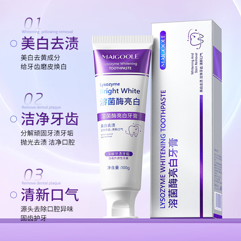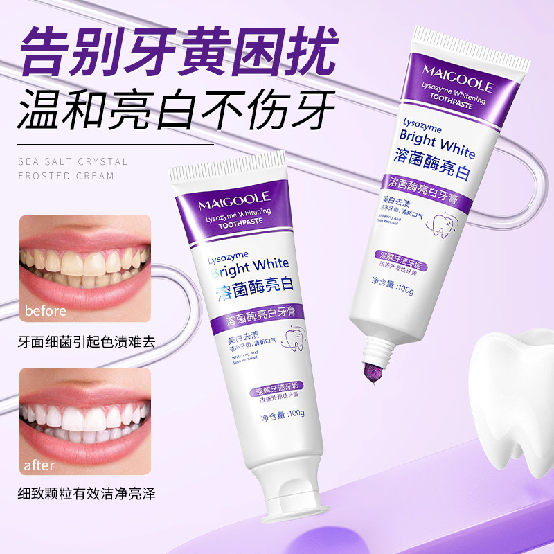 溶菌酶牙膏去牙渍牙垢口腔异味清新口气亮白牙齿美白去黄护龈成人