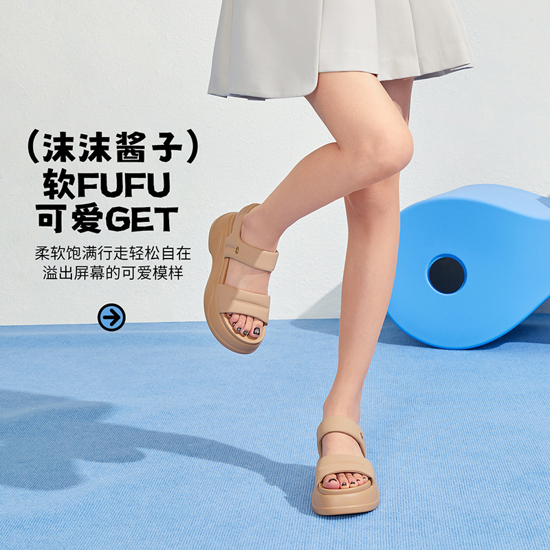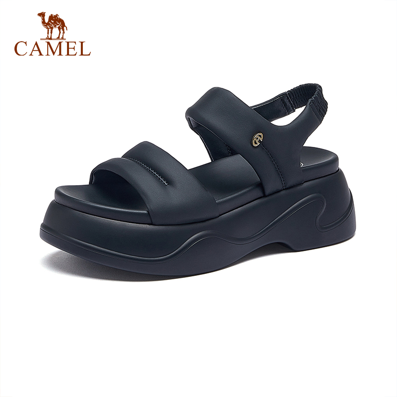 骆驼女鞋2025夏季新款一字带休闲增高厚底沙滩鞋面包运动凉鞋女