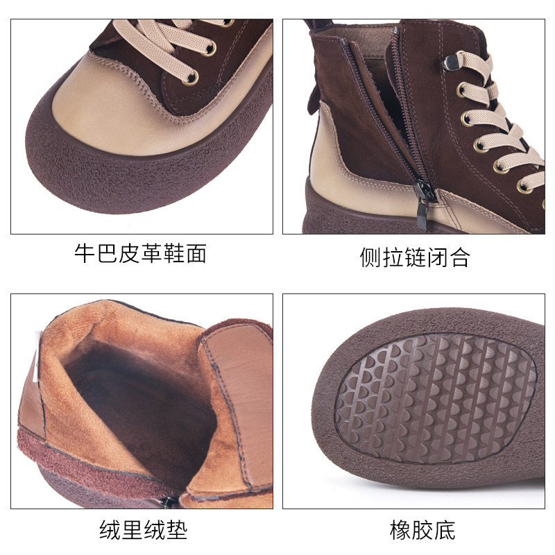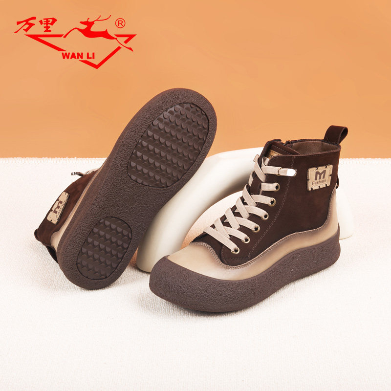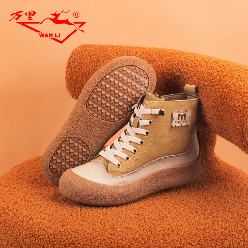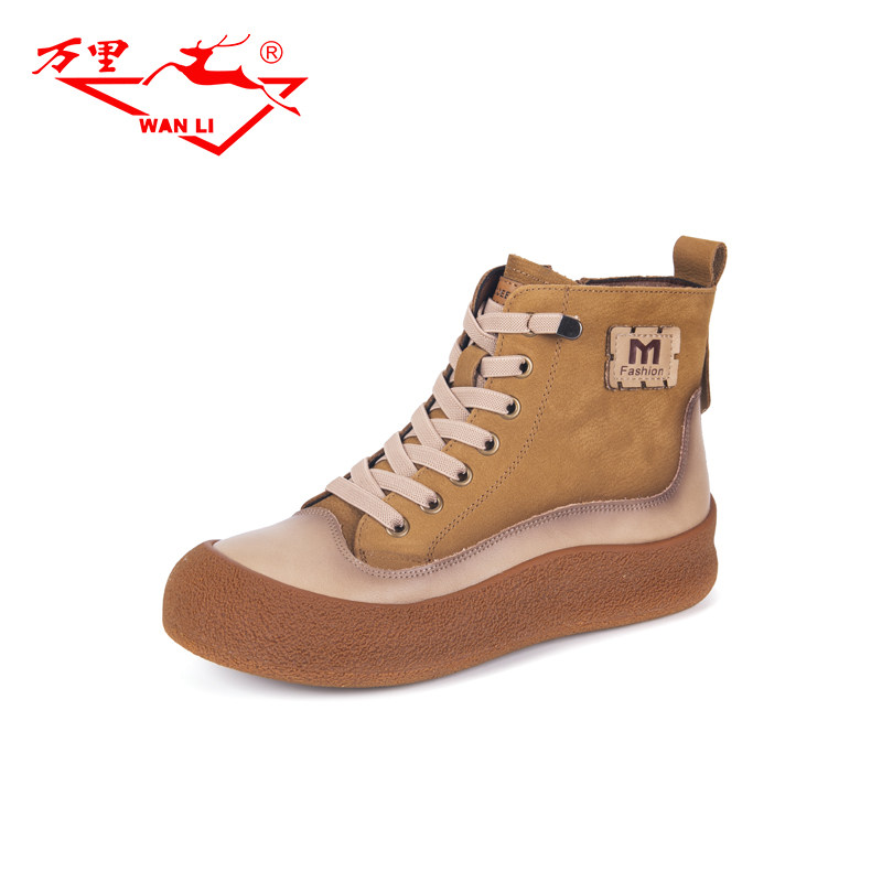 万里冬季真皮女鞋时尚复古马丁靴韩式系带绒里平底短靴HRT679