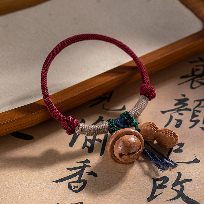 好事花生手工编织纯桃木铃铛手绳本命年红绳情侣闺蜜礼物黑绳手链