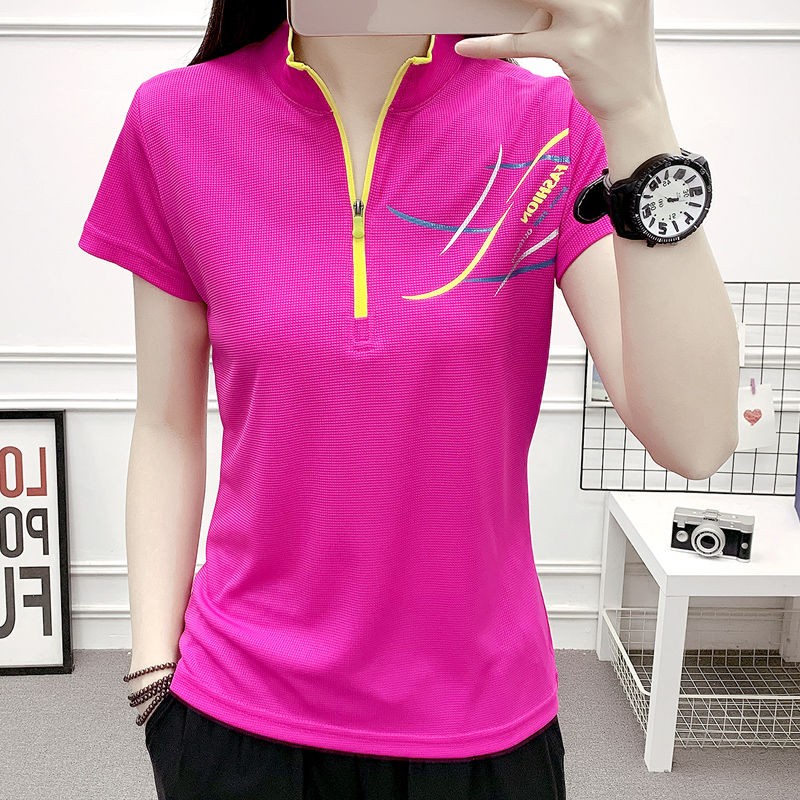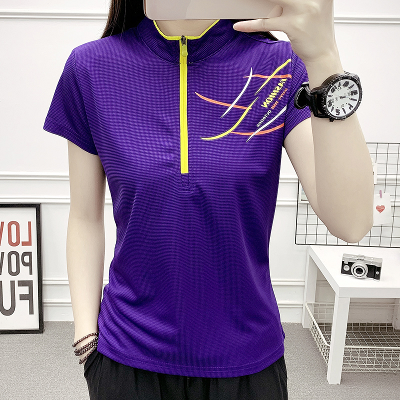 速干t恤女运动跑步春夏季立领上衣户外徒步健身服装男短袖快干衣