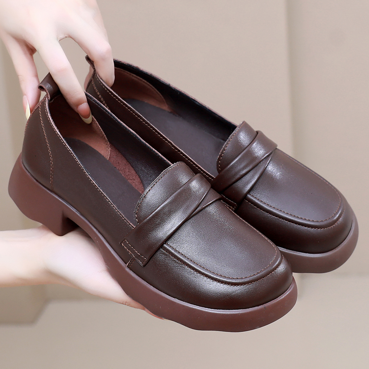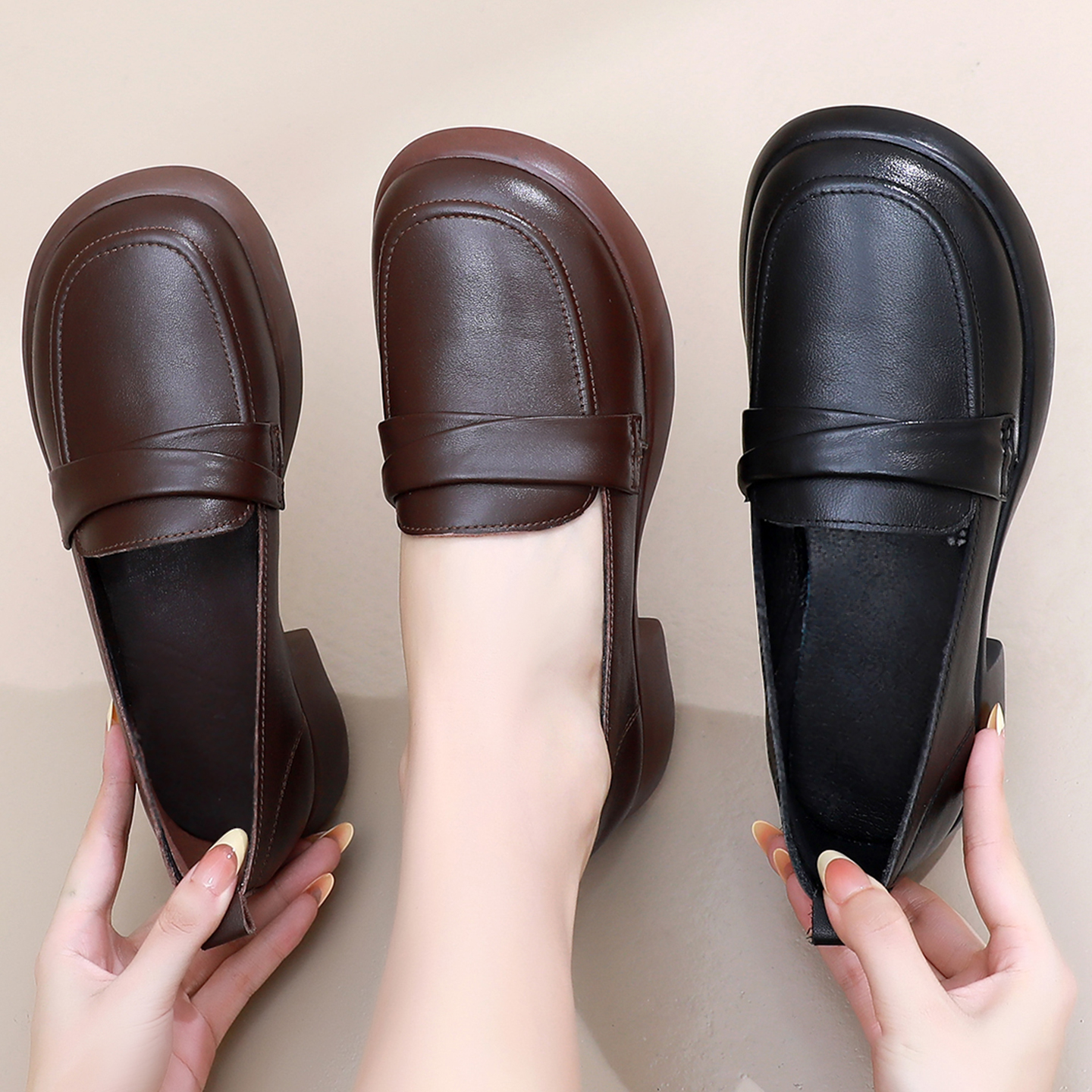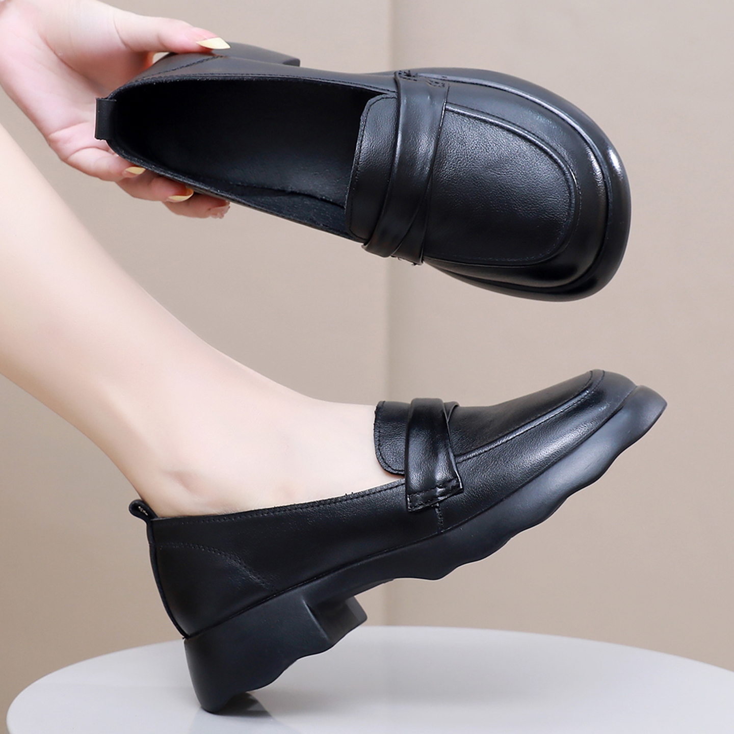 真皮软底乐福鞋女鞋秋款小皮鞋一脚蹬单鞋舒适工作鞋防滑妈妈鞋子