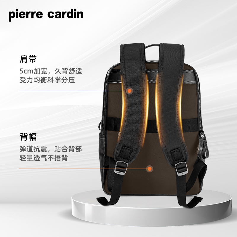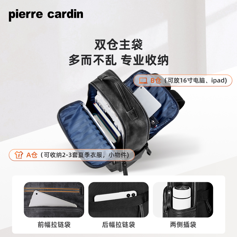 【真皮】皮尔卡丹男包大容量双肩包男士商务电脑通勤背包出差旅行
