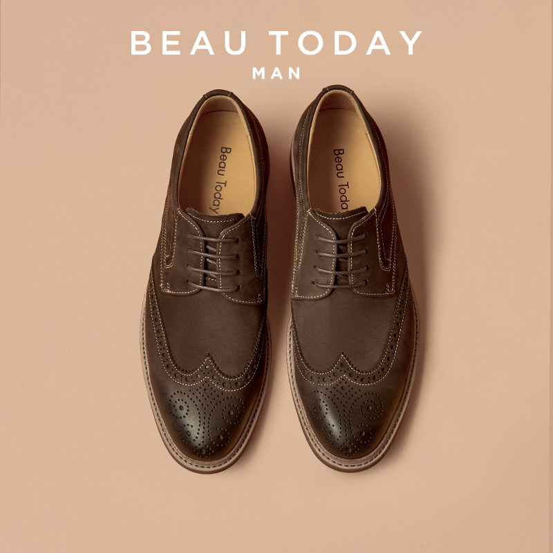 【商场同款】BeauToday布洛克正装皮鞋德比鞋男真皮伴郎皮鞋婚鞋