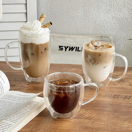 带把双层隔热防烫咖啡杯家用玻璃喝水杯子高颜值美式拿铁杯马克杯