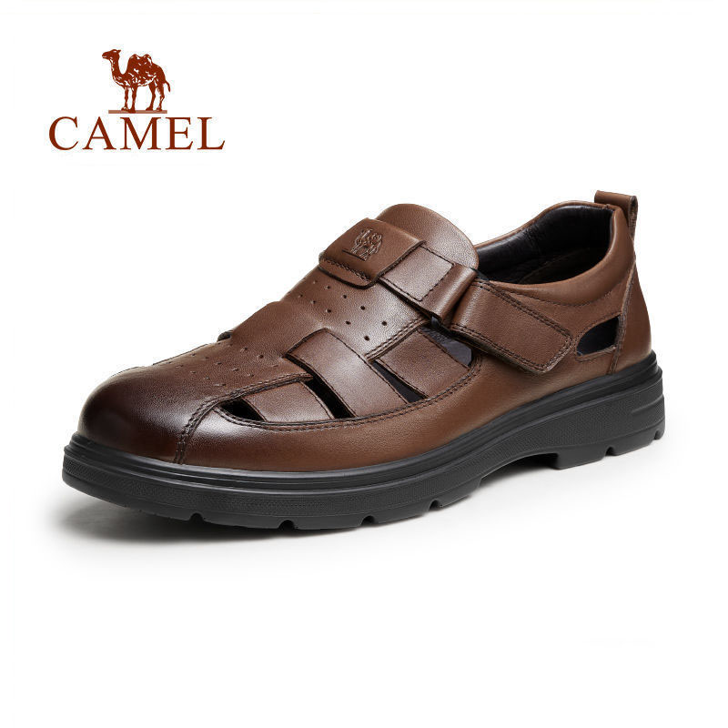 骆驼男鞋夏季新款休闲舒适百搭镂空透气真皮防滑男士商务凉鞋