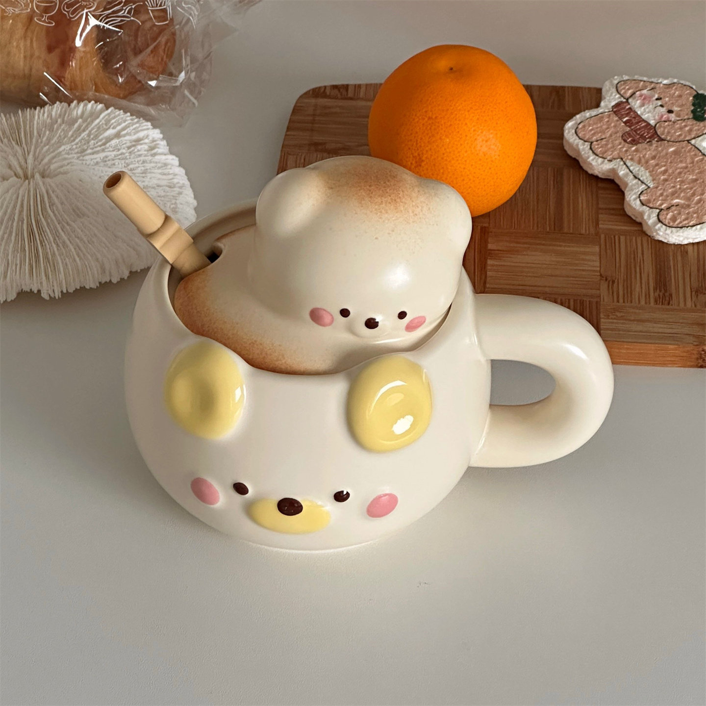生日礼物送同学老师可爱棉花糖小熊陶瓷马克杯带盖吸管杯伴手礼物