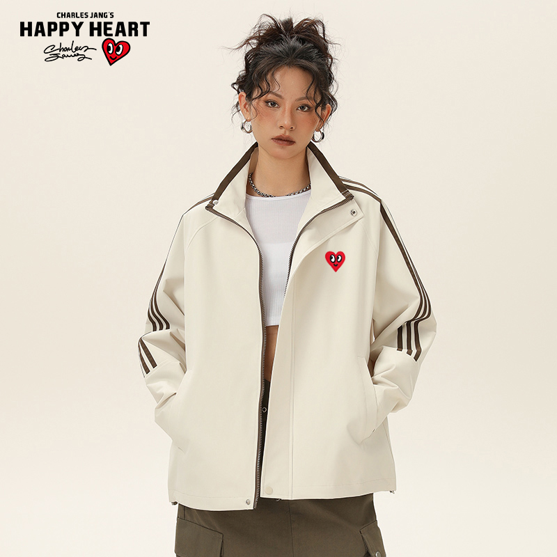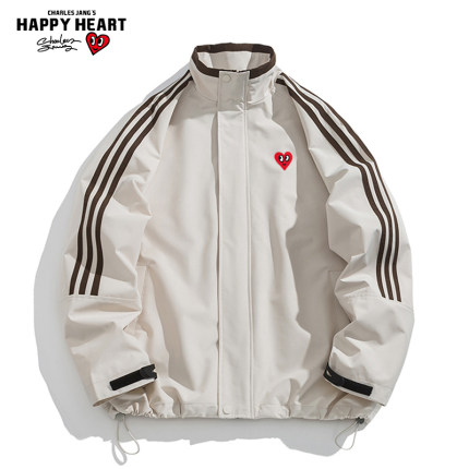 查尔斯桃心 撞色条纹运动夹克男春秋季立领防风防水教练服外套