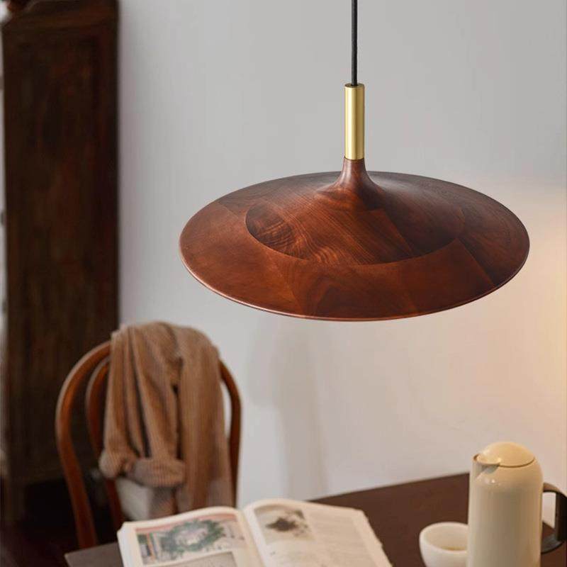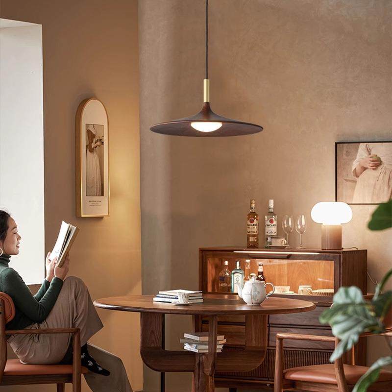 新中式中古餐厅飞碟吊灯黑胡桃实木侘寂风卧室床头吧台三头吊灯