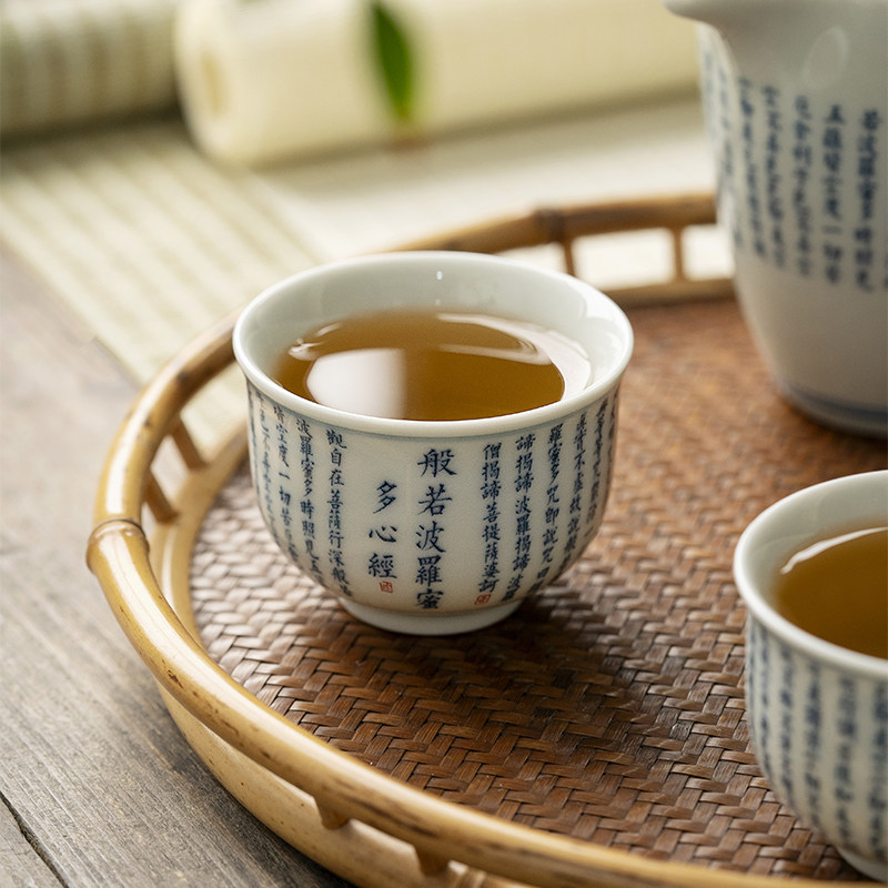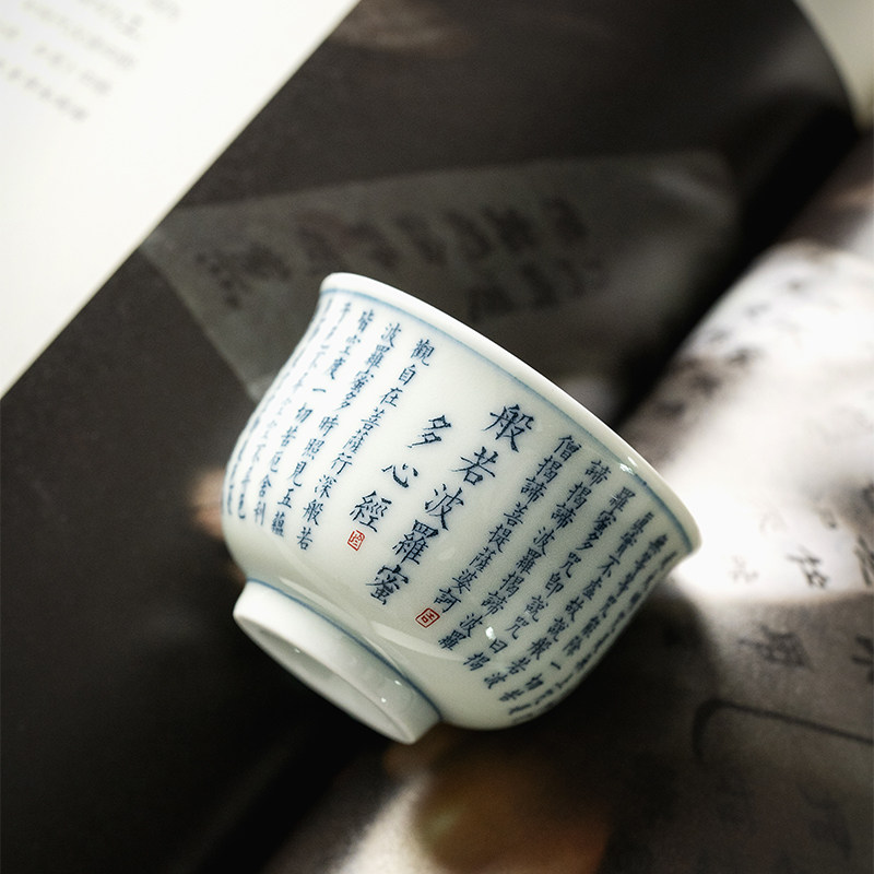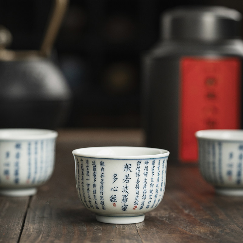 仿古般若波罗蜜多心经小茶杯陶瓷功夫茶具单杯男女品茗杯礼盒装