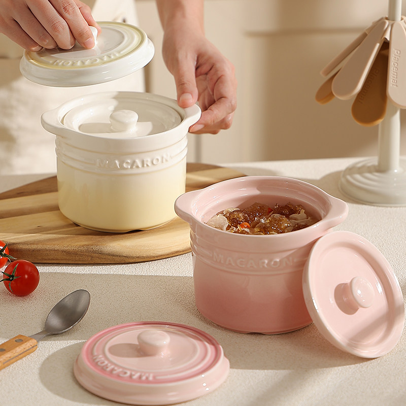 陶瓷高级炖盅隔水炖汤盅带盖炖蛋神器家用炖烤梨炖罐小汤盅耐高温