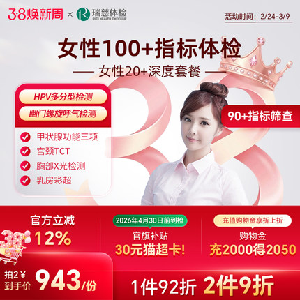 小红书同款--女性20+深度体检套餐妇科hpv宫颈tct乳腺甲状腺青年