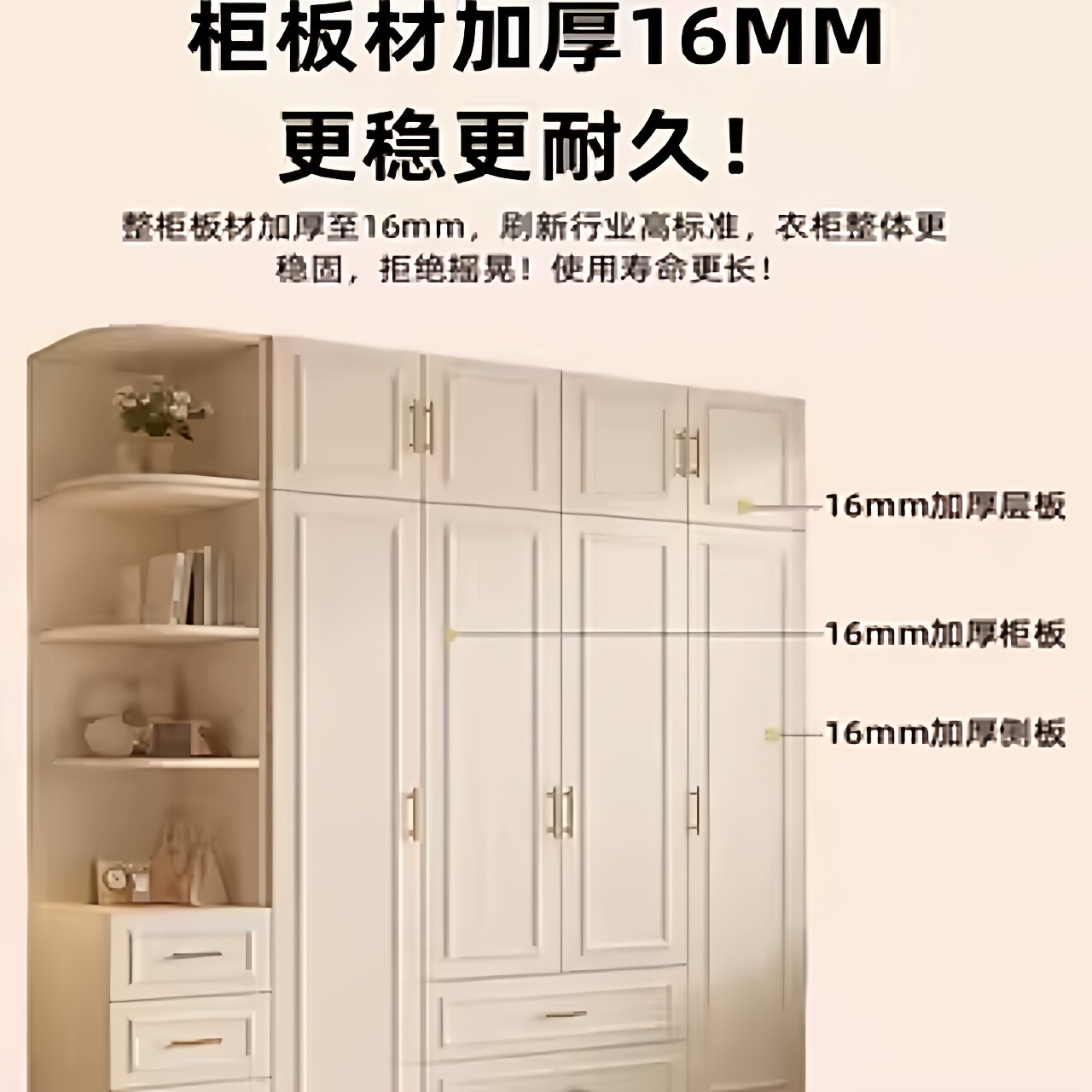 衣柜家用卧室全实木法式复古繁花大衣橱奶油风家具免安装儿童衣柜