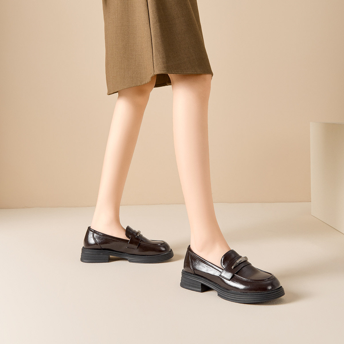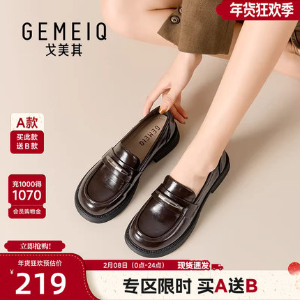 戈美其英伦小皮鞋女2026年春季新款黑色平底单鞋一脚蹬乐福鞋女鞋