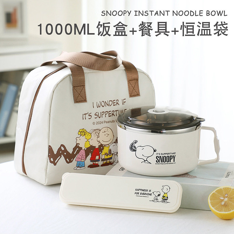 Snoopy史努比大容量304不锈钢便当饭盒泡面碗方便面食堂打饭大号