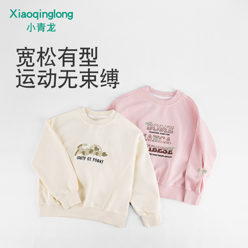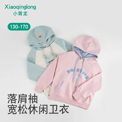 小青龙春装新款儿童落肩卫衣男童女童连帽圆领上衣大童休闲长袖T