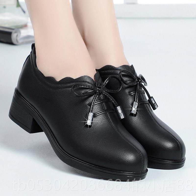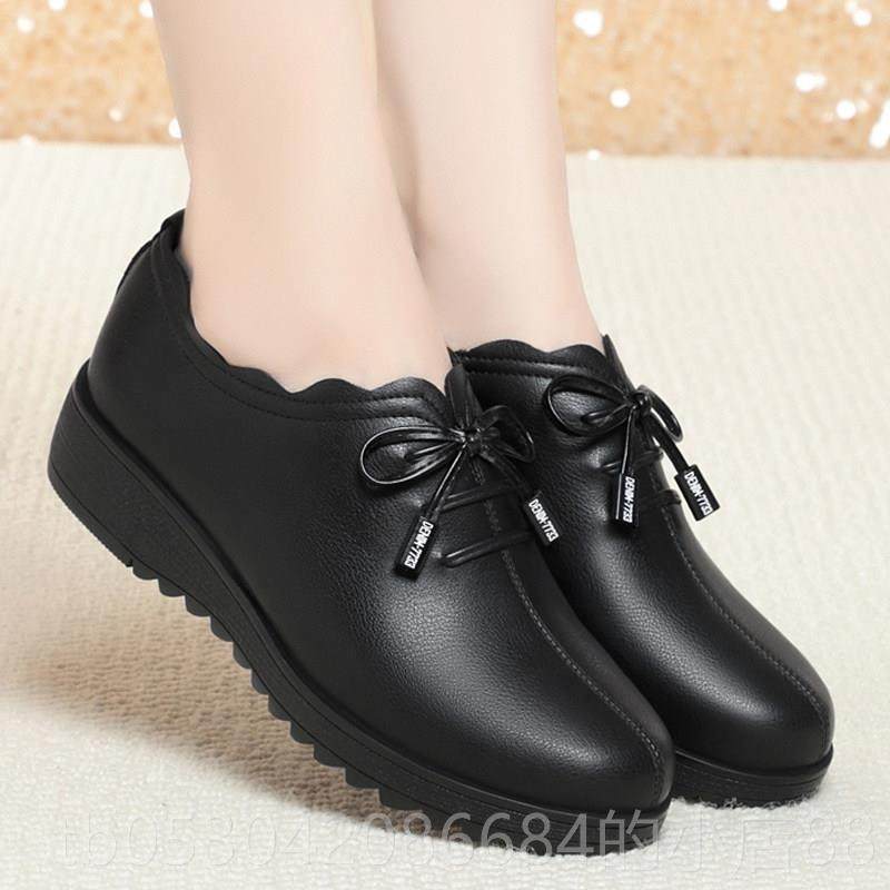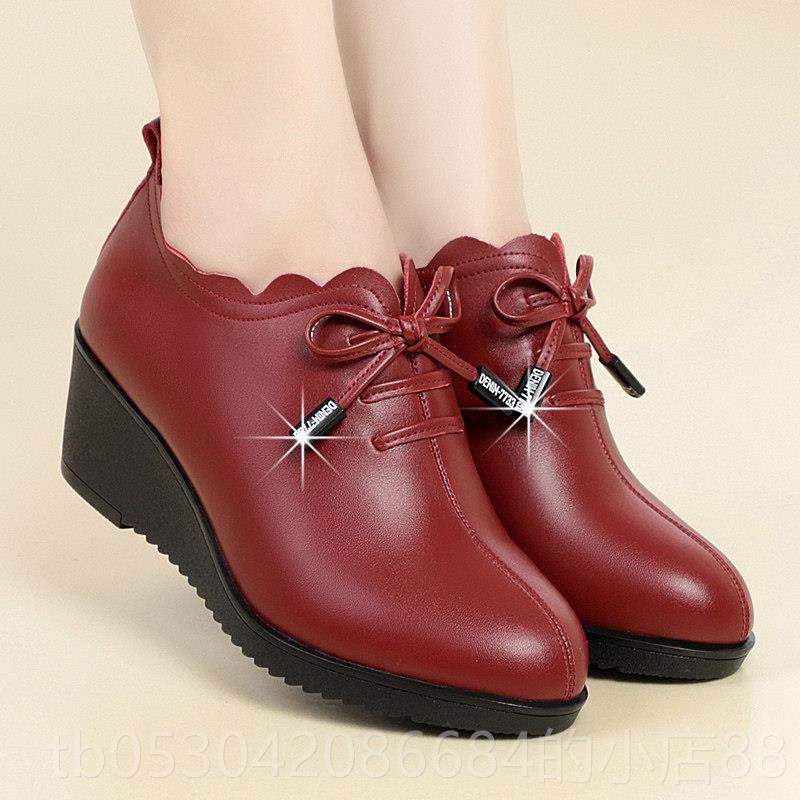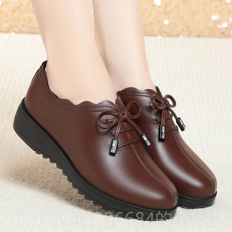 正品妈妈鞋坡跟真皮软底跟单鞋女士皮鞋中女中老年鞋秋深口春季婚
