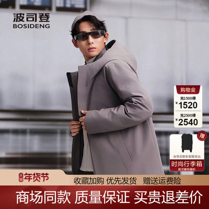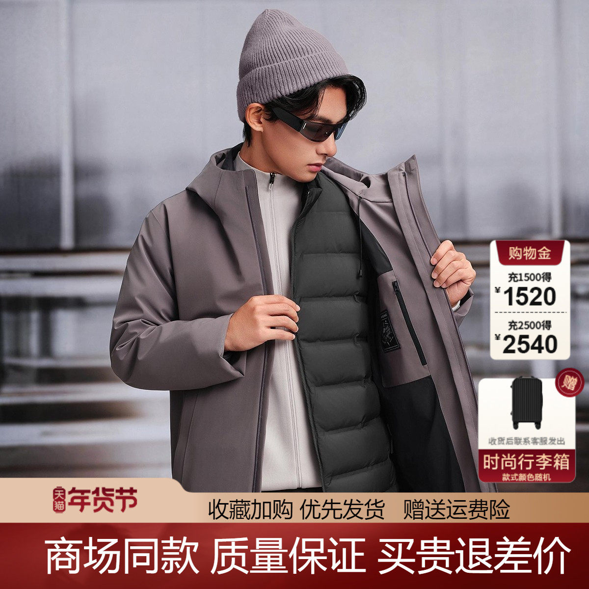 波司登2025冬新款男士可脱卸内胆鹅绒连帽羽绒服经典商务保暖外套