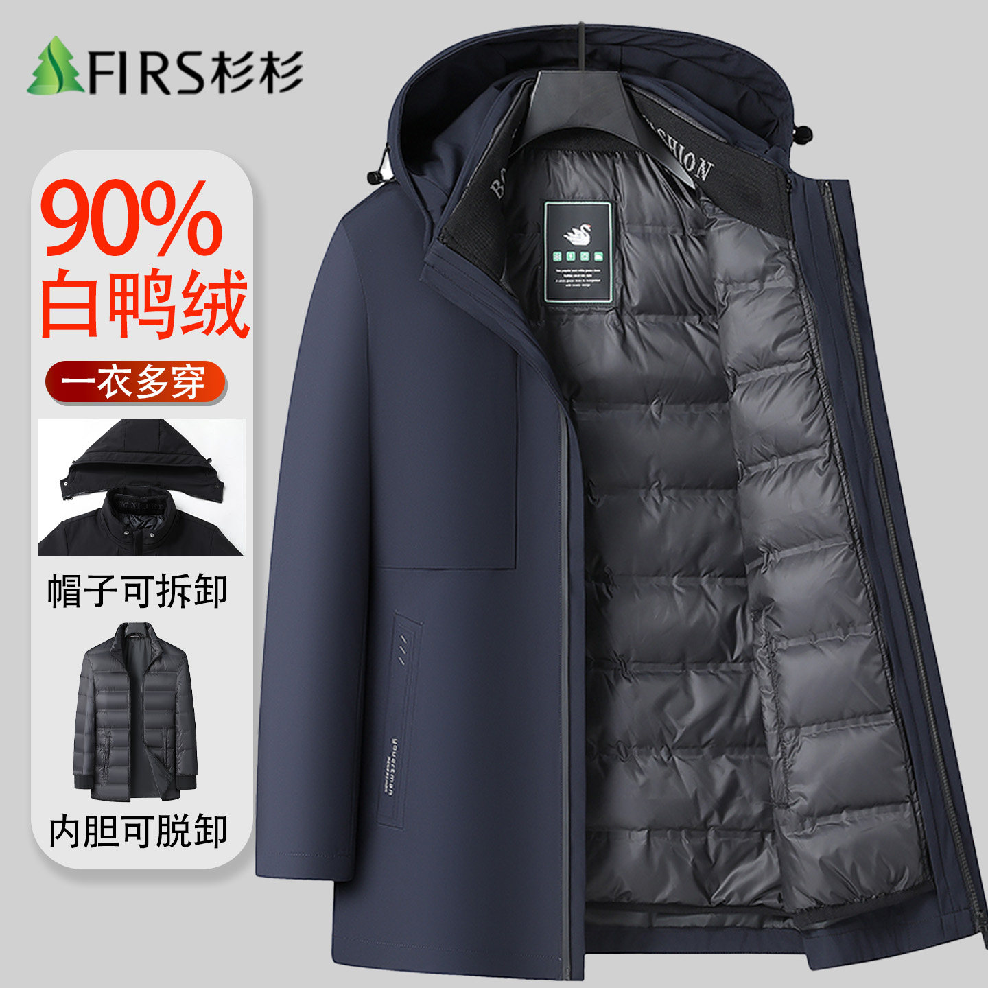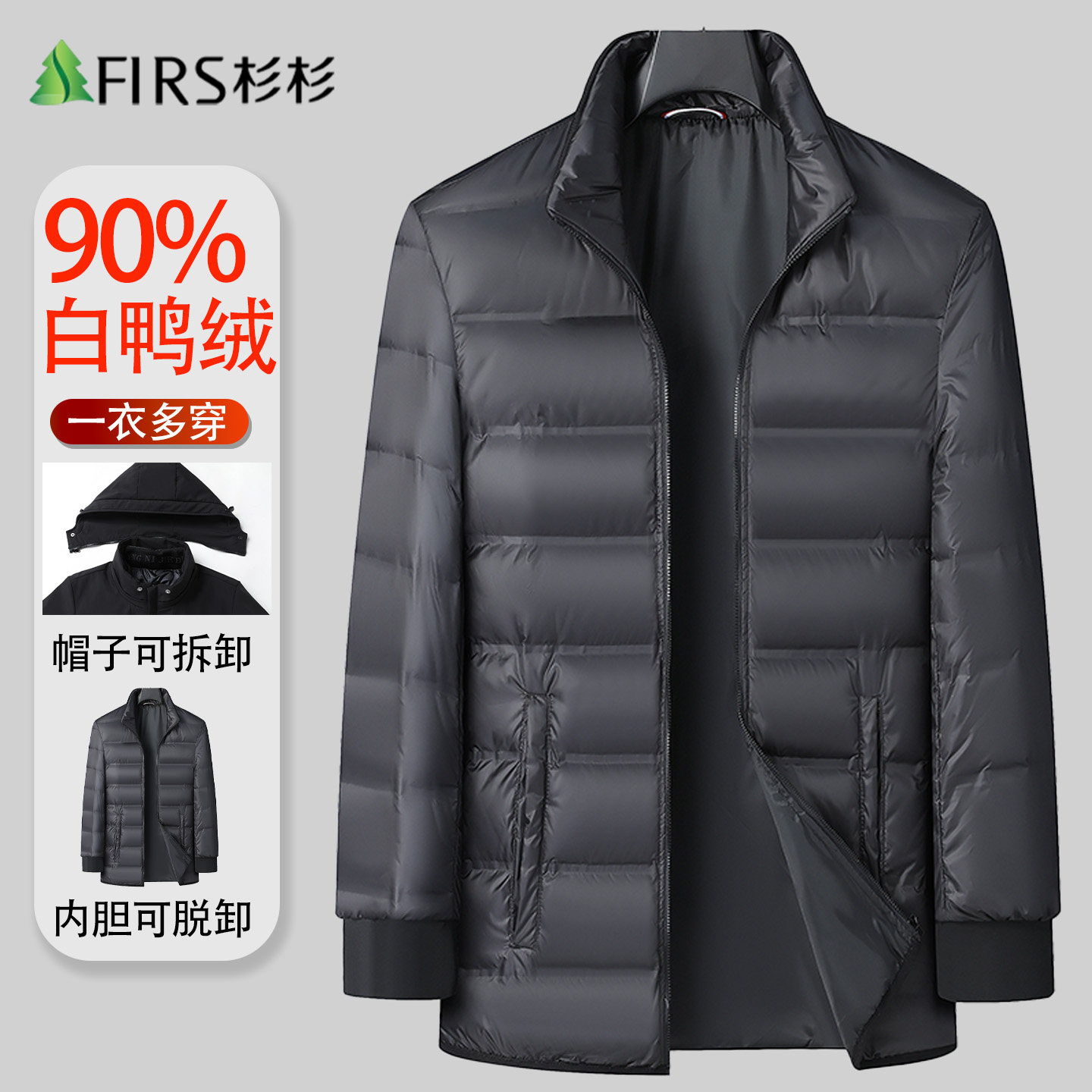 【脱卸内胆】杉杉中老年羽绒服男爸爸装冬季新款加厚保暖鸭绒外套