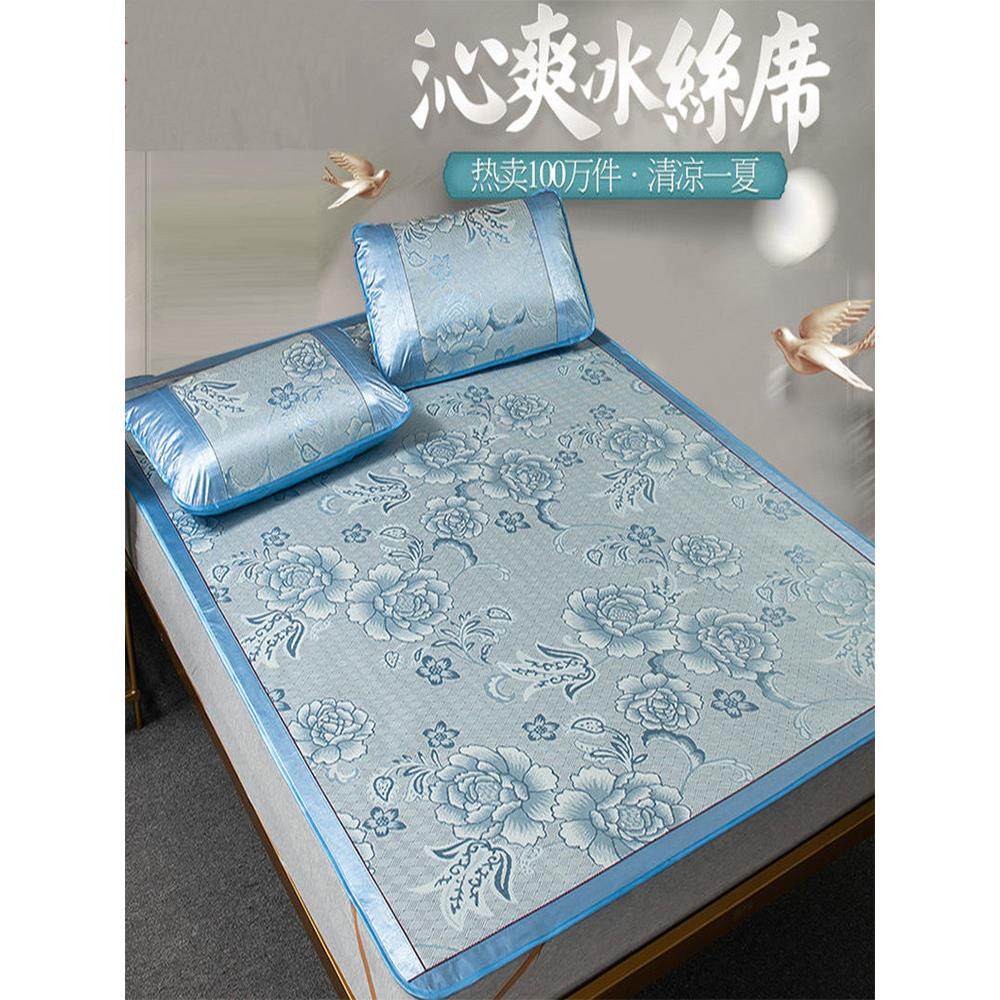 冰丝凉席三件套1.8m床双人夏季可折叠1.5单人学生宿舍1.2草席子