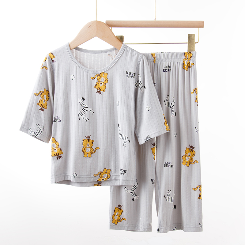 冰丝莫代尔中大童女童空调服亲子家居服儿童睡衣男童夏季薄款短袖