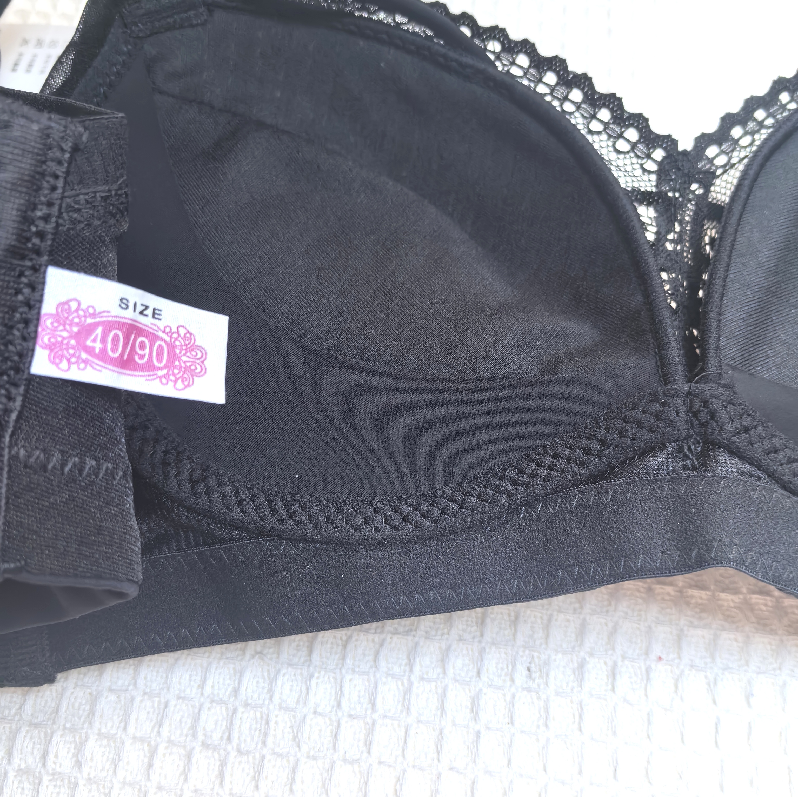 品牌折扣内衣乳胶杯无钢圈文胸黑色四排扣90B杯款中厚蕾丝聚拢杯