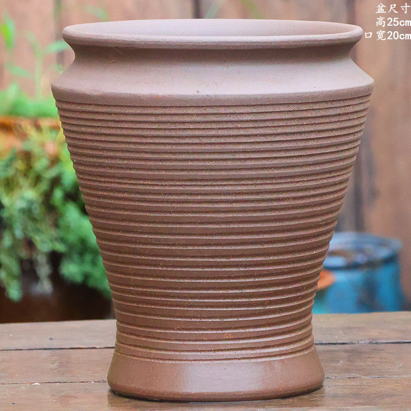 宜兴黑泥粗陶透气花盆君子兰三角梅大号室内紫砂简约陶瓷盆景高盆