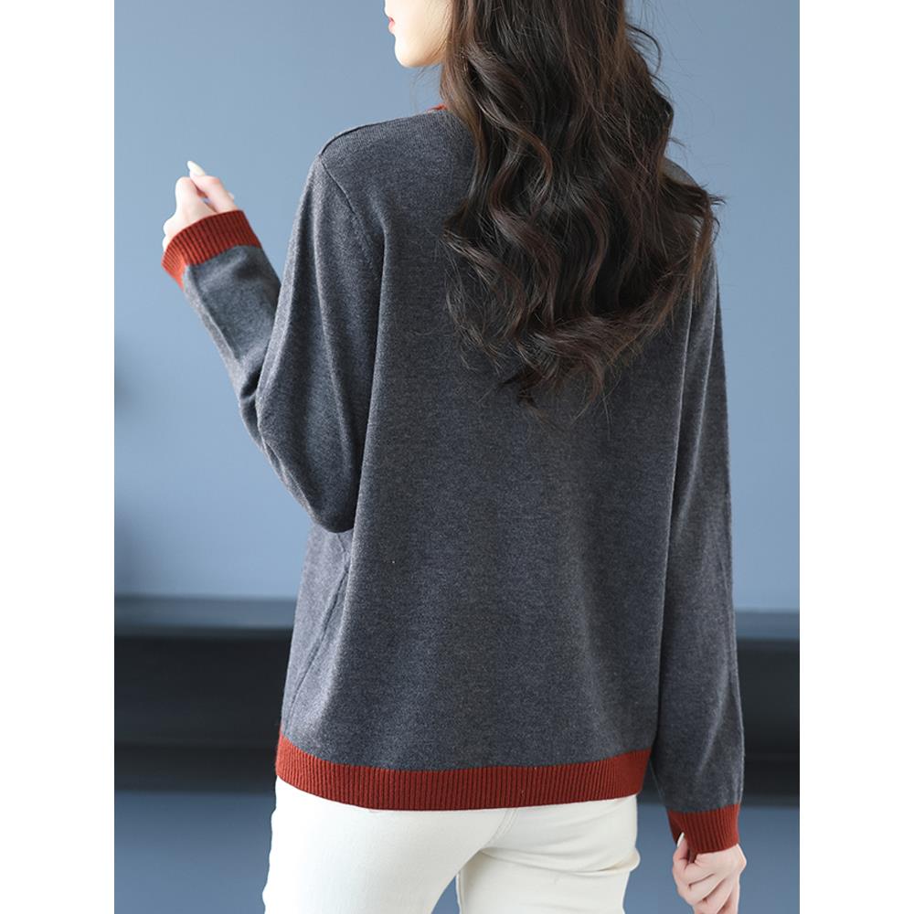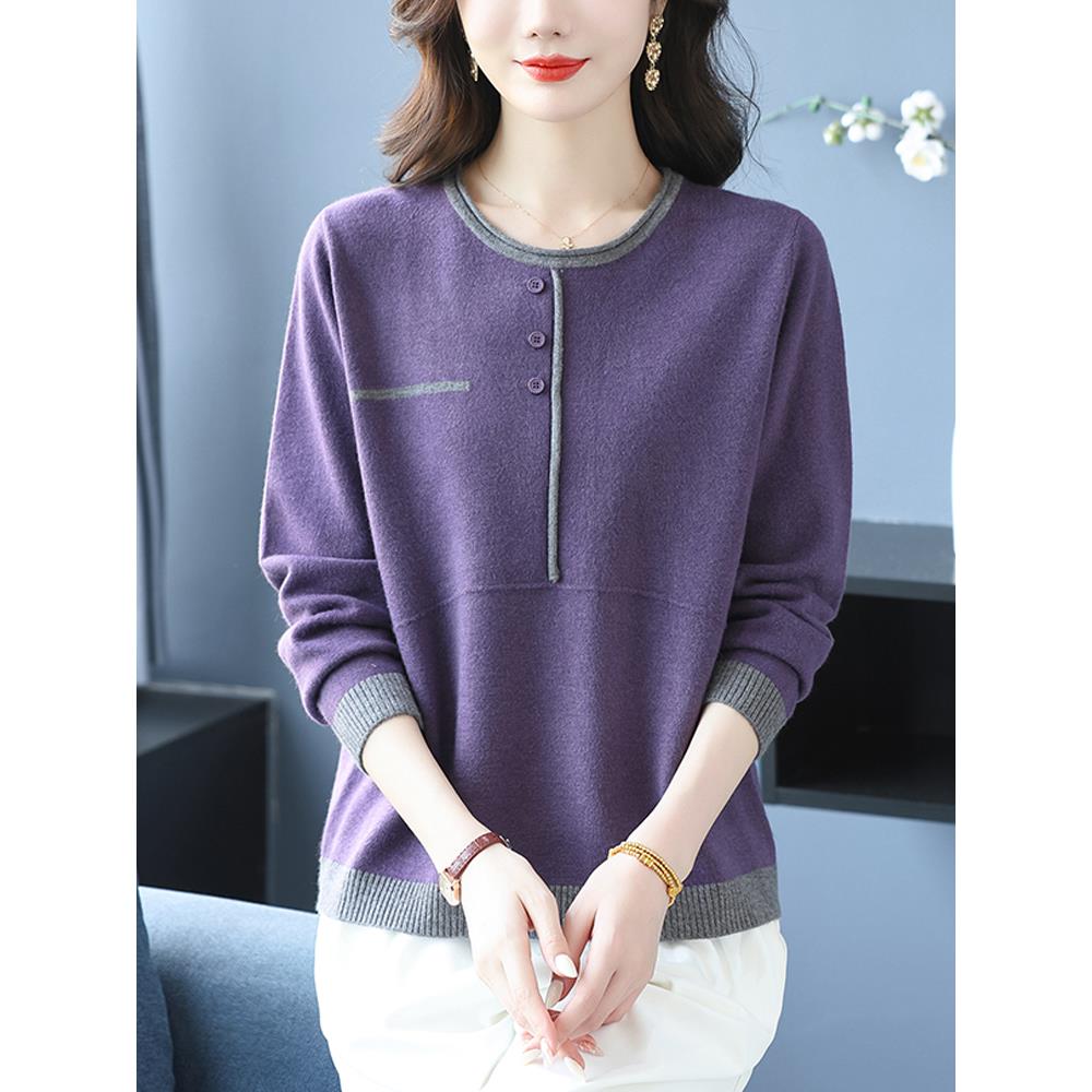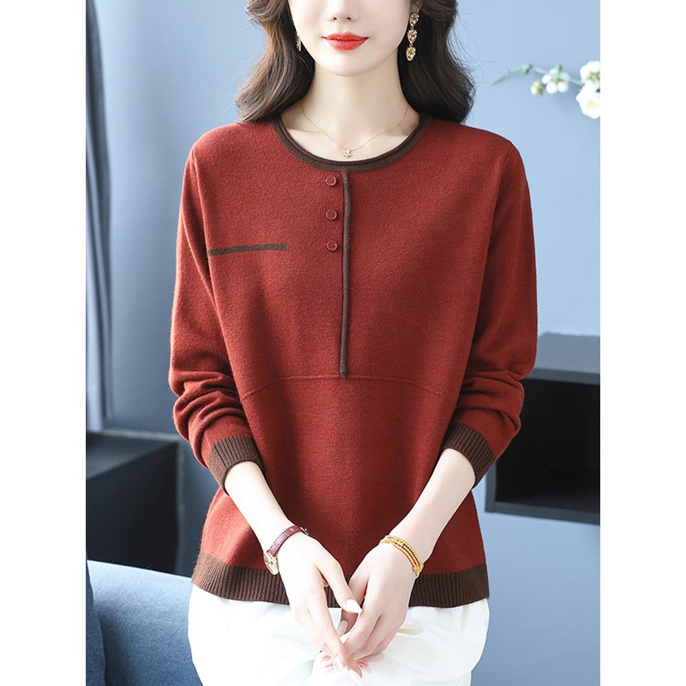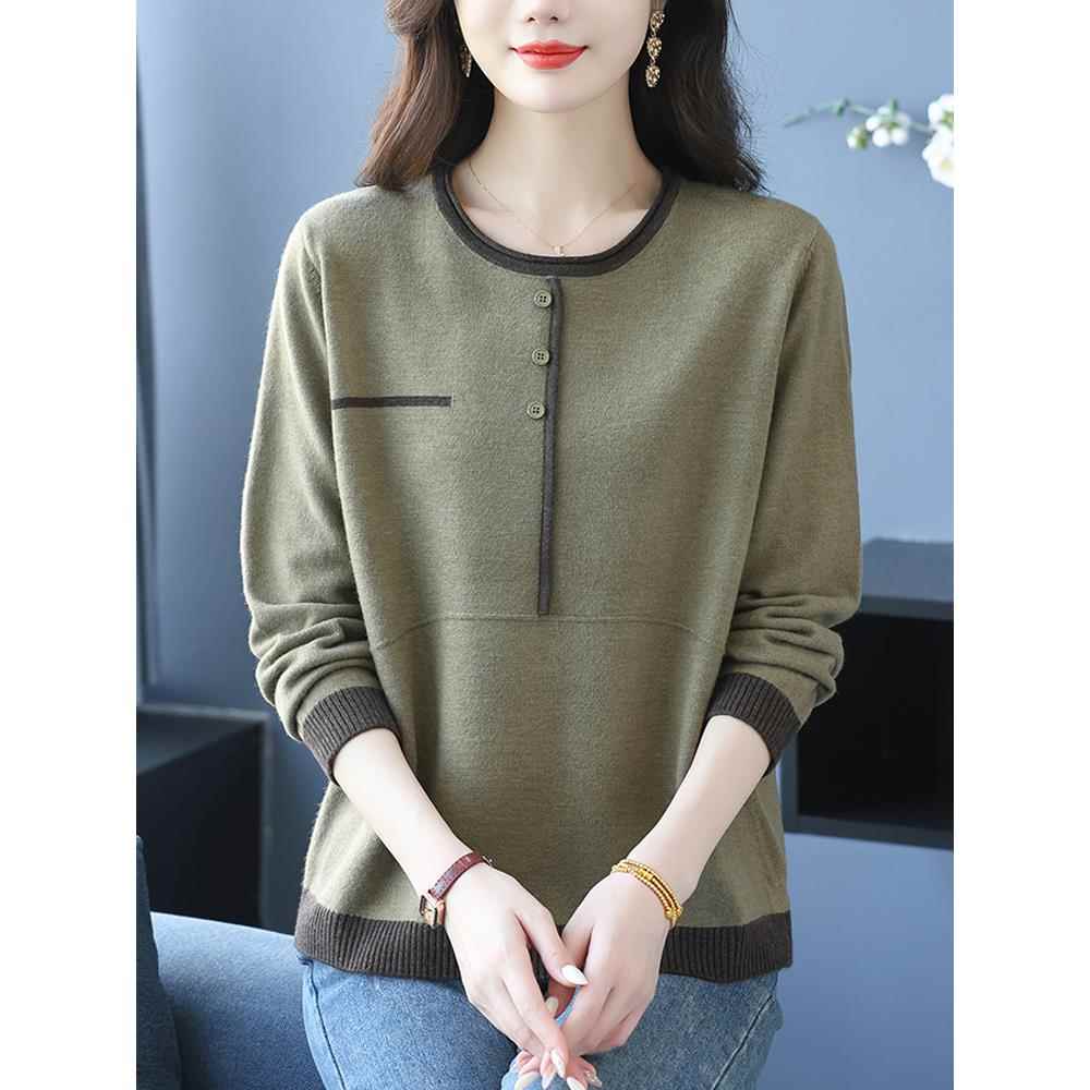 中老年妈妈装秋装宽松大码羊毛衫女士毛衣内搭长袖针织打底衫上衣