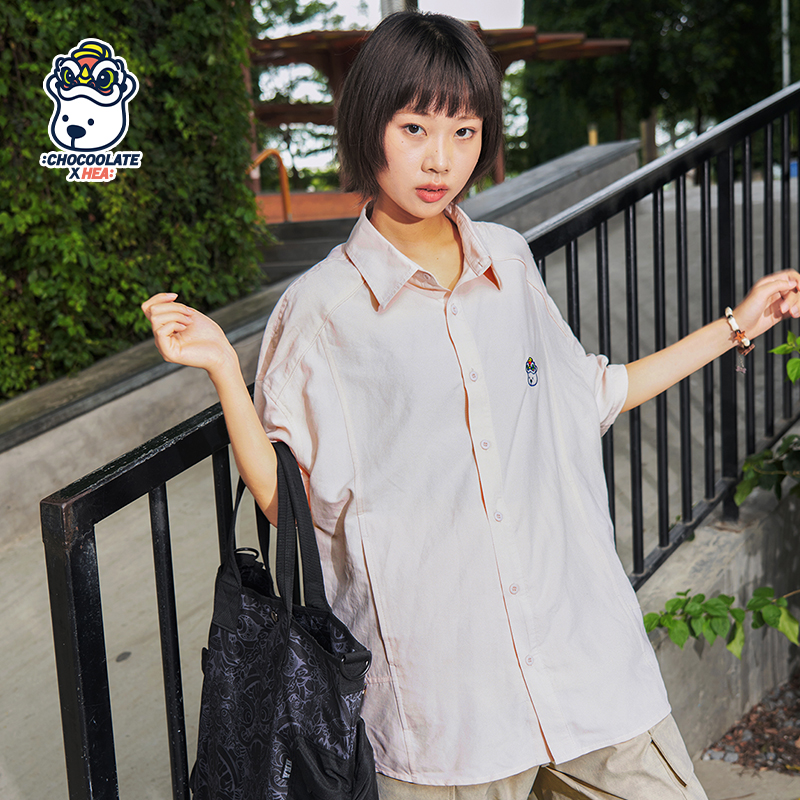 HEA x i.t:CHOCOOLATE联名款国潮POLO领短袖衬衫男女同款刺绣宽松