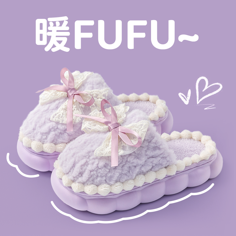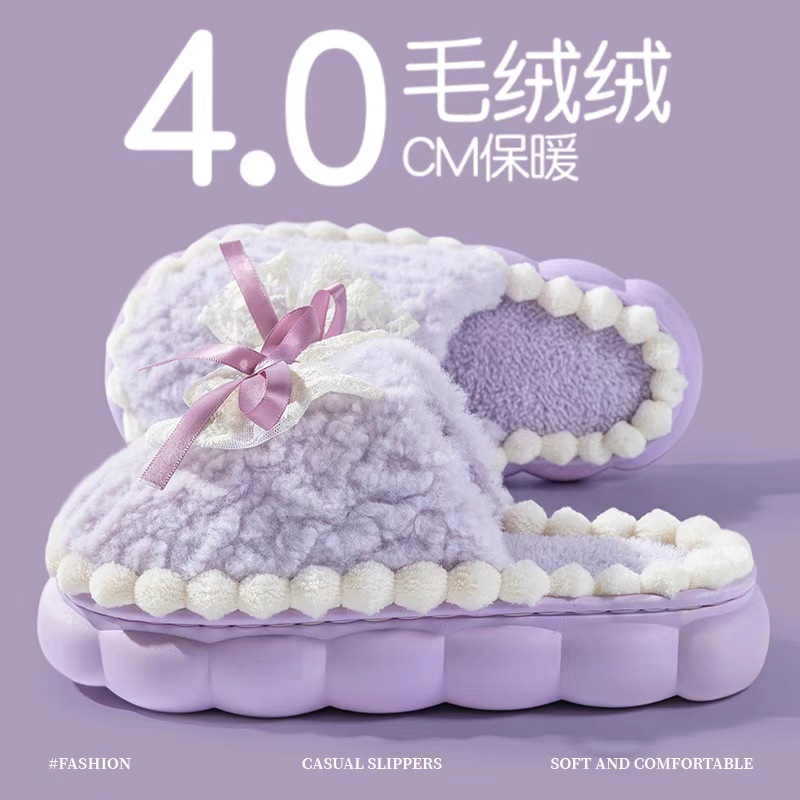 甜美蝴蝶结棉拖鞋女款2025新款秋冬季家居室内防滑保暖毛绒拖鞋女