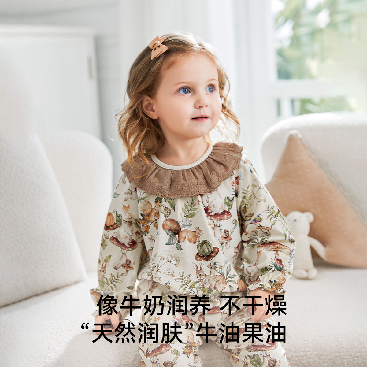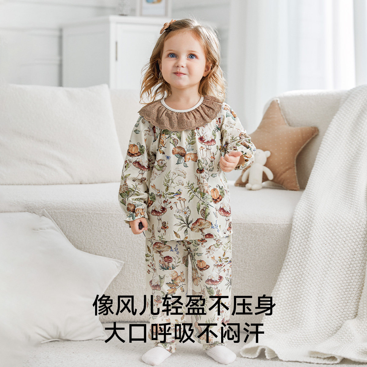 嫚熙果柔儿童家居服宝宝睡衣套装男女分体长袖早春秋纯棉丝柔棉