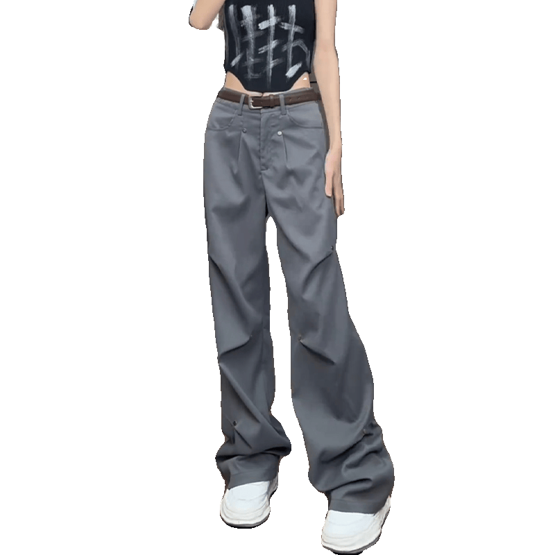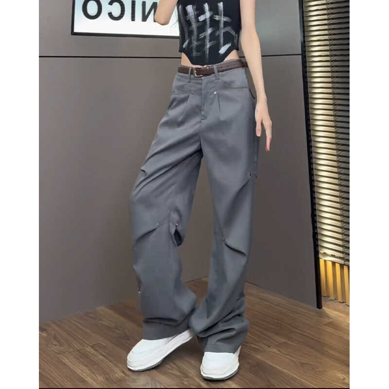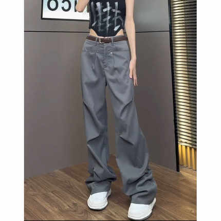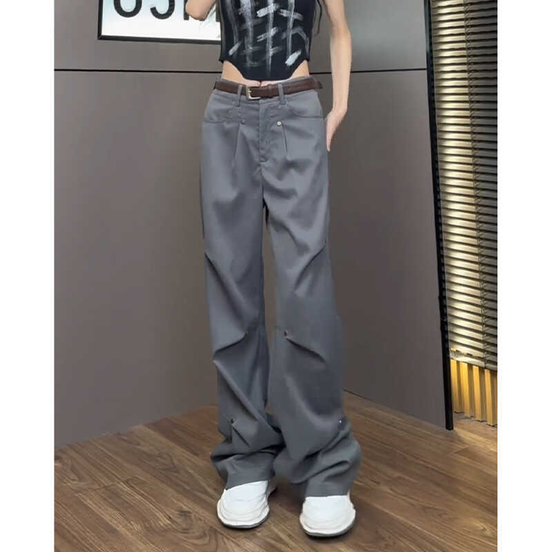 美式灰色直筒工装裤女春夏2024新款小个子高腰窄版西装休闲裤卫裤