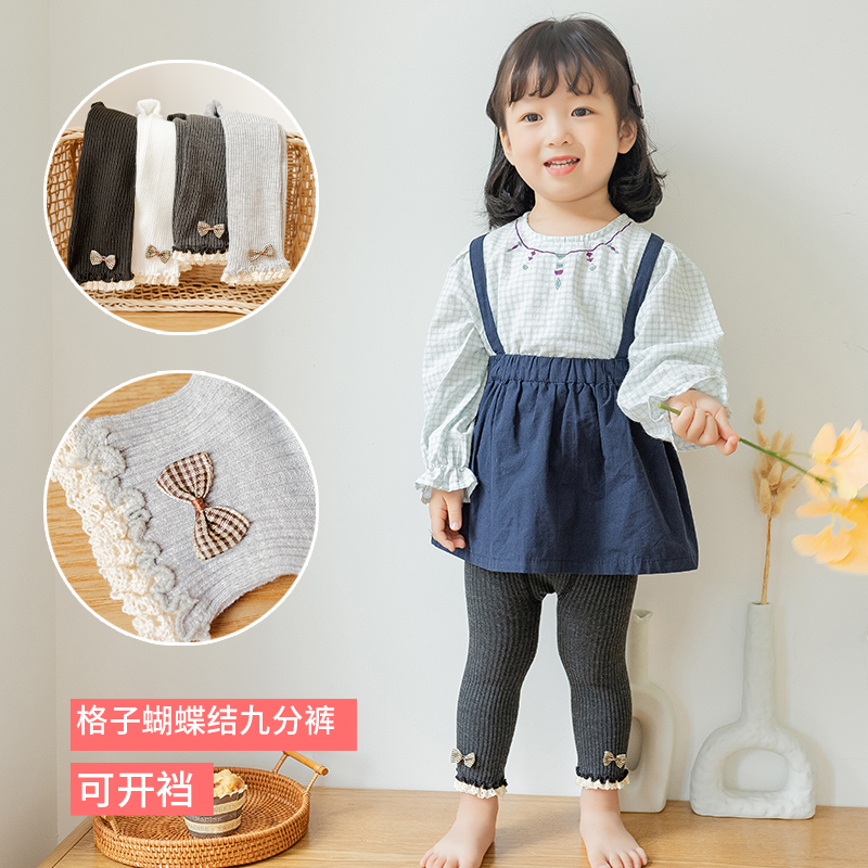 宝宝打底裤春秋款外穿纯棉薄款女小童可开裆九分裤袜婴儿童长裤子